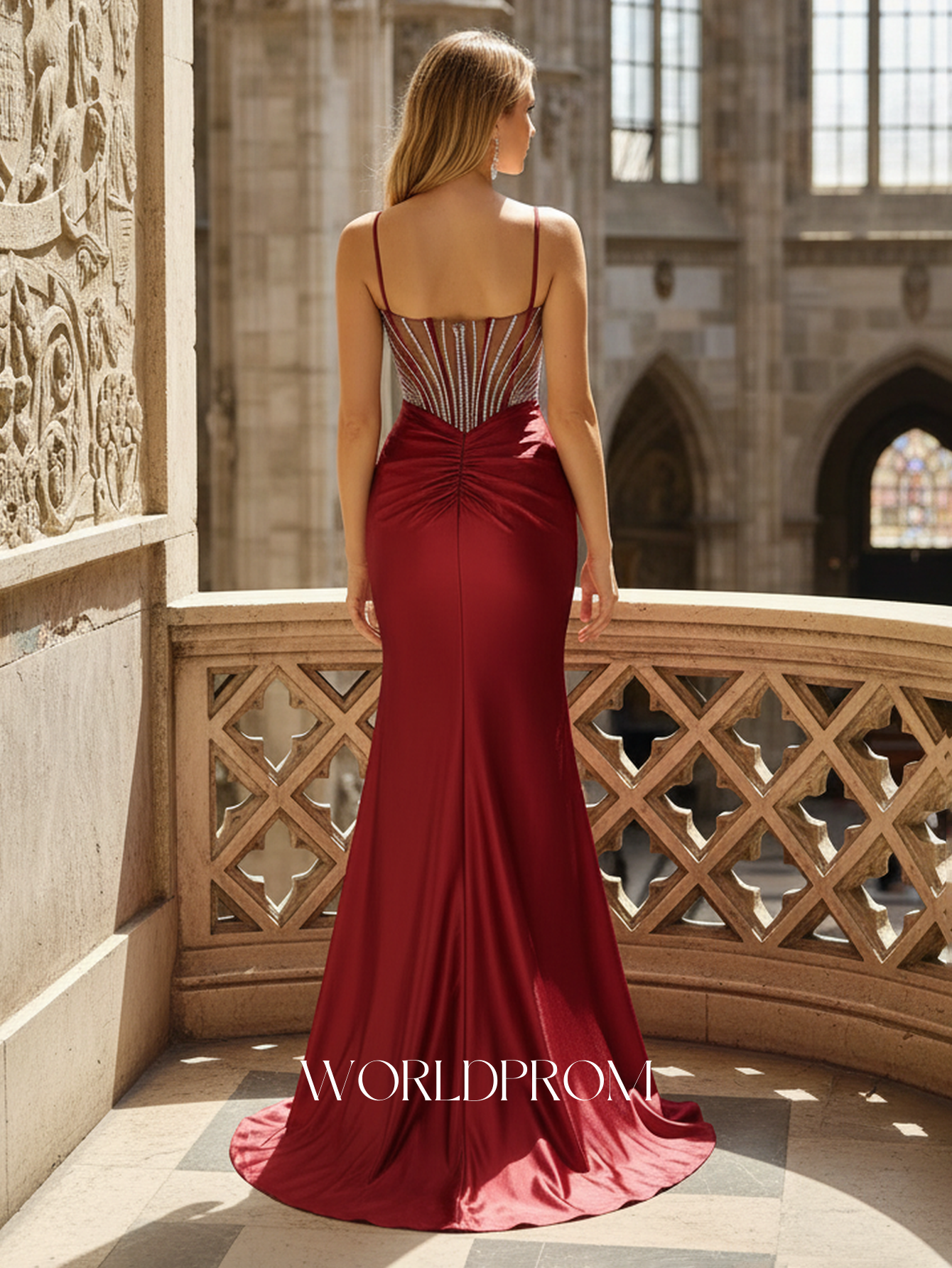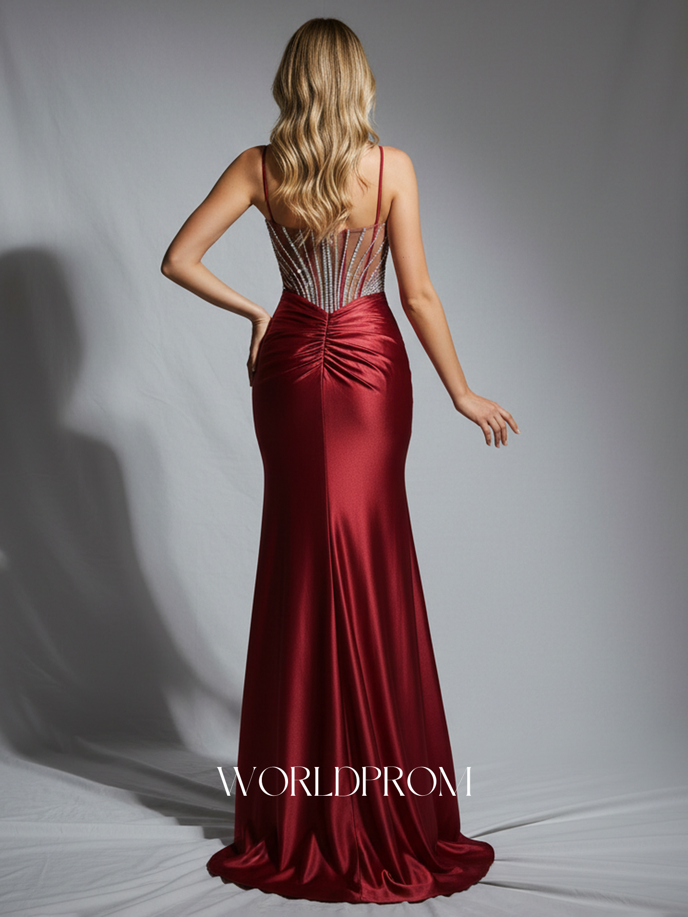 This satin prom gown features crystals on the bodice. The spaghetti straps luxury maxi dress has a sweetheart neckline and split hem. Dubai ruched formal dresses are ideal for party, evening or festivals.