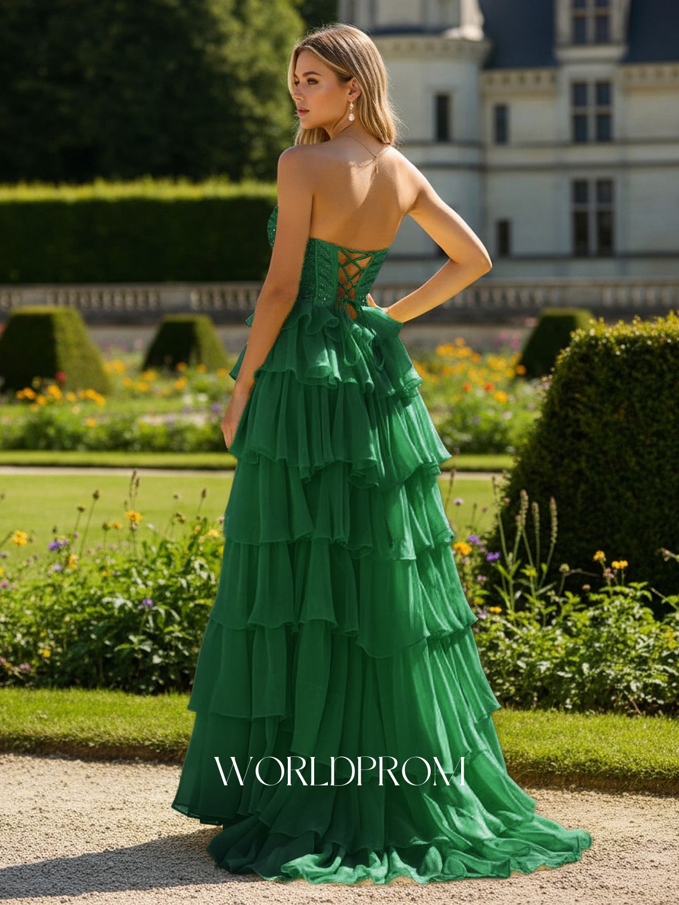 Luxury Layered Crystal Ball Gown Prom Dress with Boned Bodice - Emerald Green