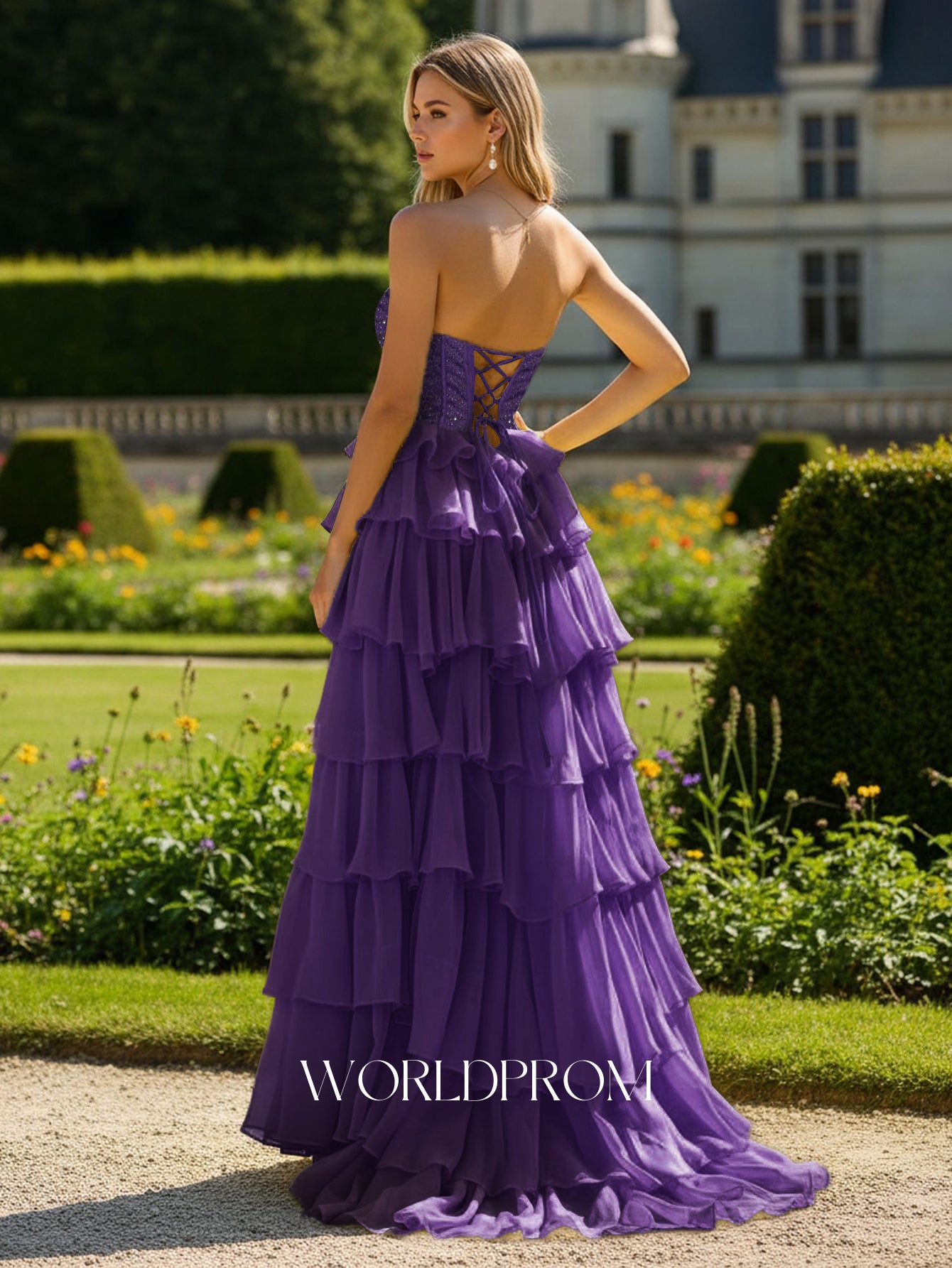 Details: Backless, Fitted Waist, Layered, Crystal, Boned