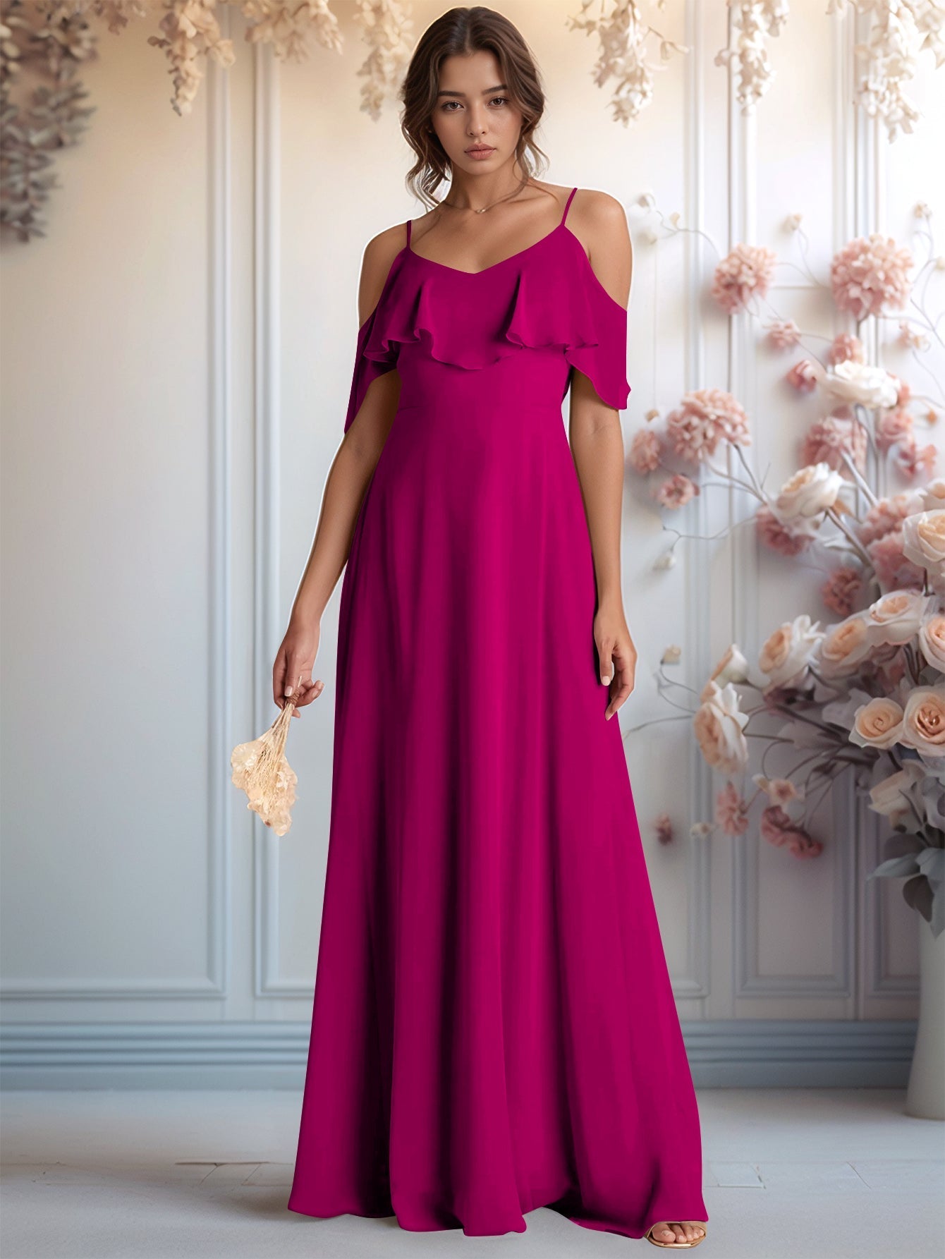 Off Shoulder Chiffon A-Line Bridesmaid Dress - Fuchsia
