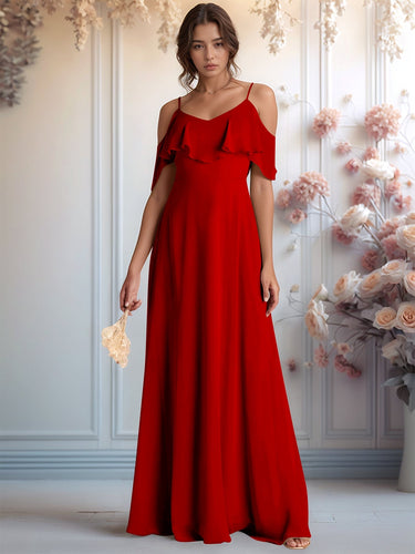 Off Shoulder Chiffon A-Line Bridesmaid Dress - Red