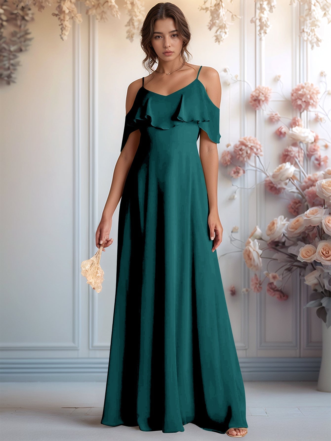 Off Shoulder Chiffon A-Line Bridesmaid Dress - Teal