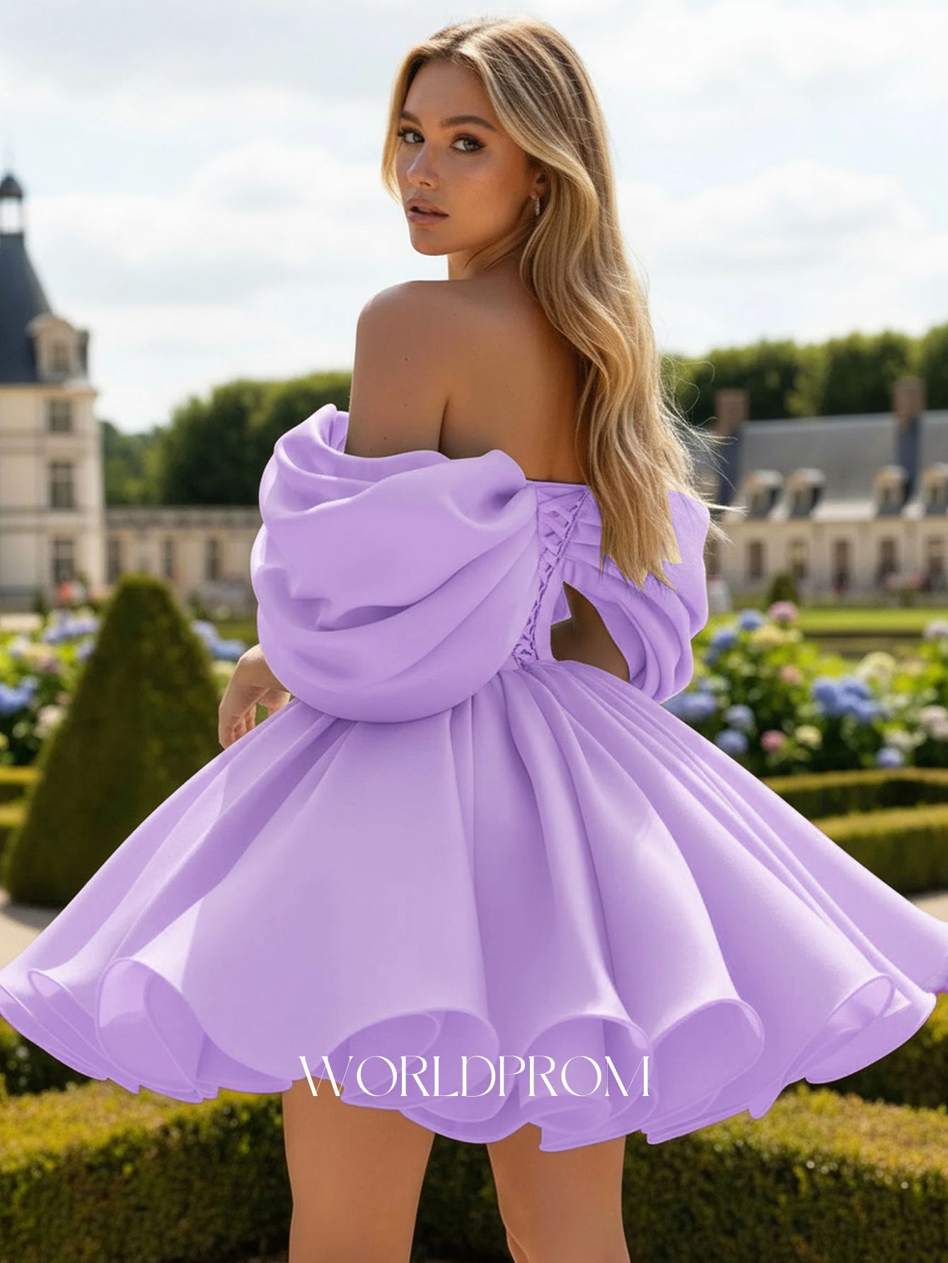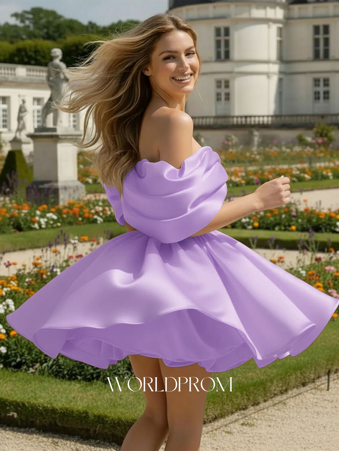 Off Shoulder Satin Bodice Mini Ball Gown Prom Dress - Lilac