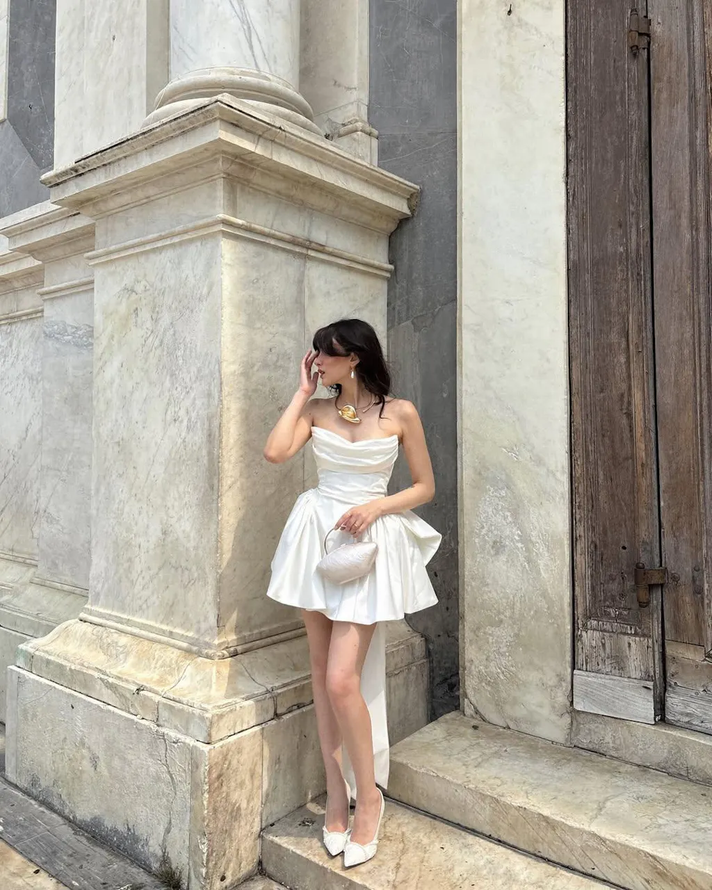 Details: Backless, Fitted Waist, Bow