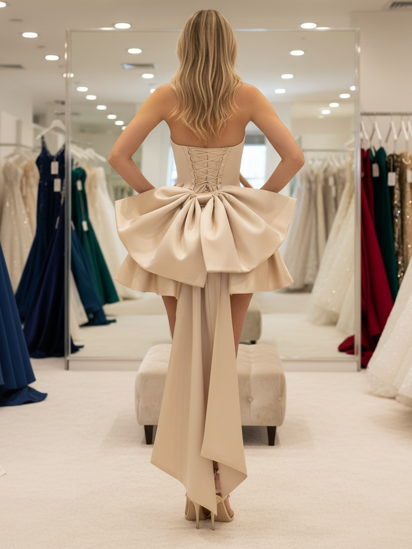 Removable Big Bow Bridal Prom Mini Dress - Champagne