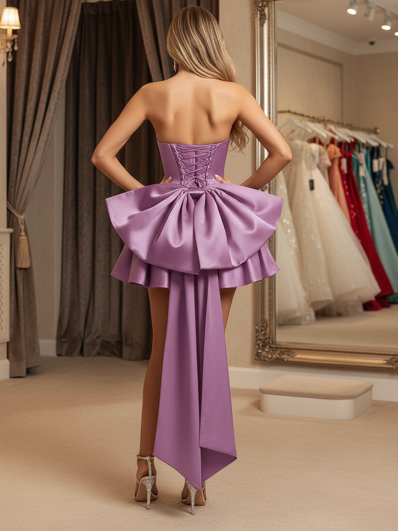 Removable Big Bow Bridal Prom Mini Dress - Lilac