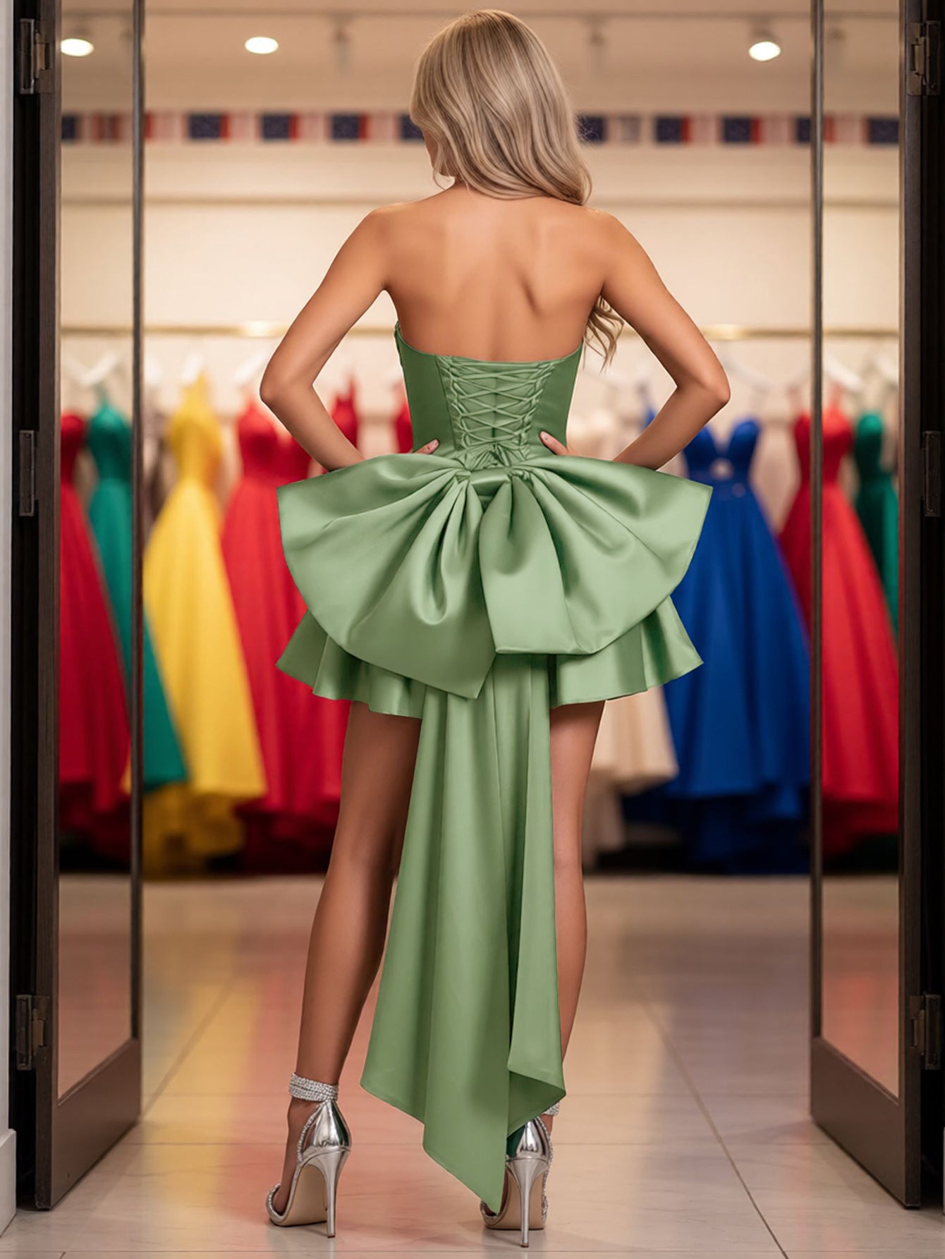 Removable Big Bow Bridal Prom Mini Dress - Sage Green