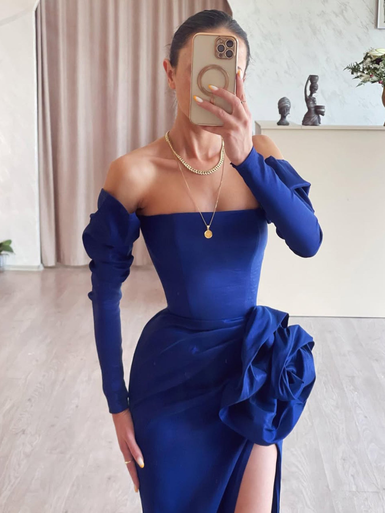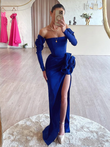 Removable Handmade Flower Strapless Long Prom Dress - Royal Blue
