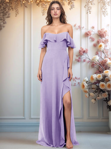 Ruffle Off Shoulder A-Line Chiffon Bridesmaid Dress - Lilac