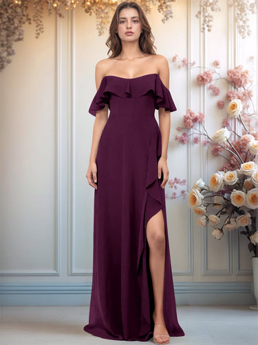 Ruffle Off Shoulder A-Line Chiffon Bridesmaid Dress - Plum