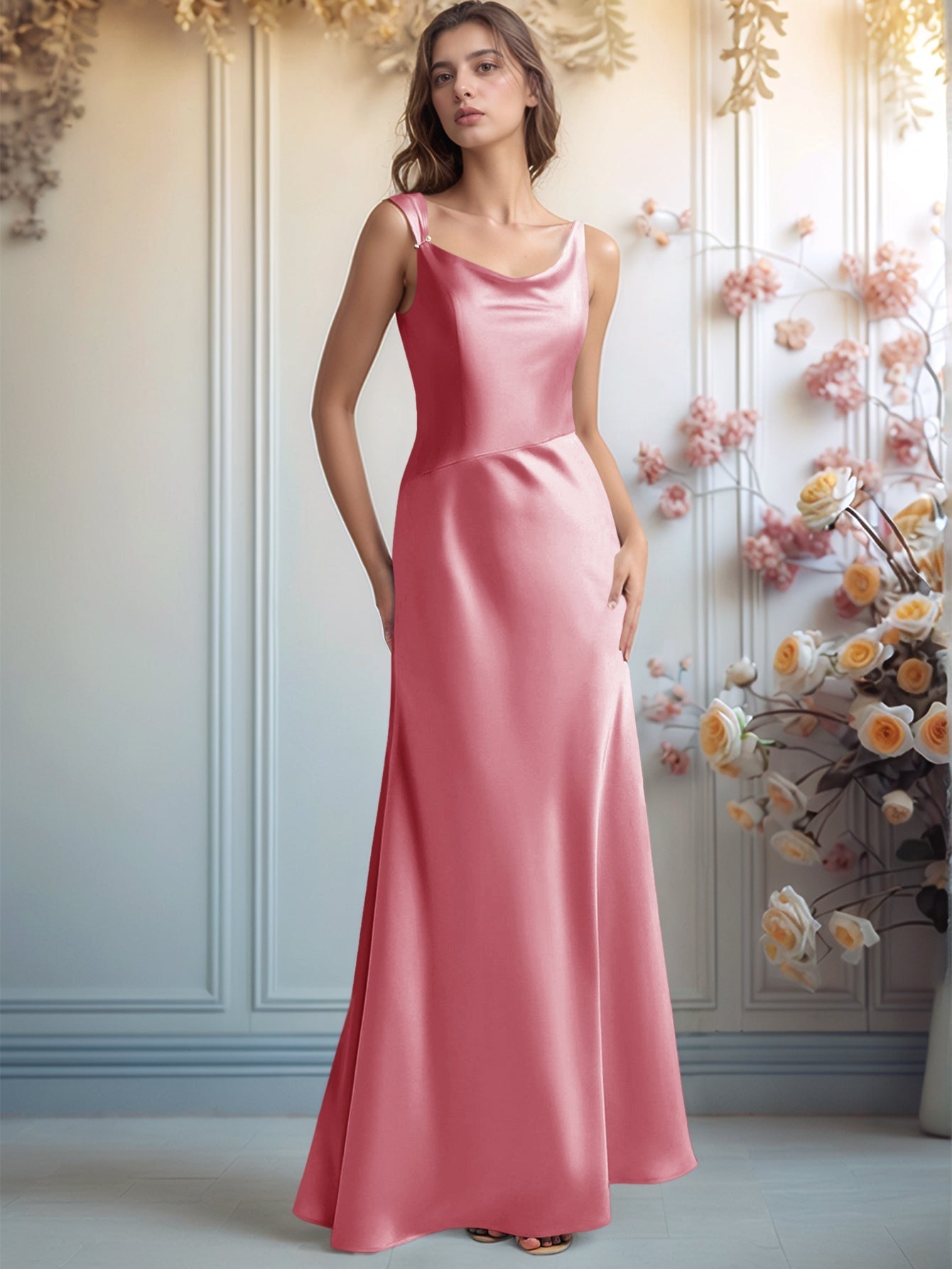 Scoop Satin Sheath Floor Length Bridesmaid Dress - Candy Pink