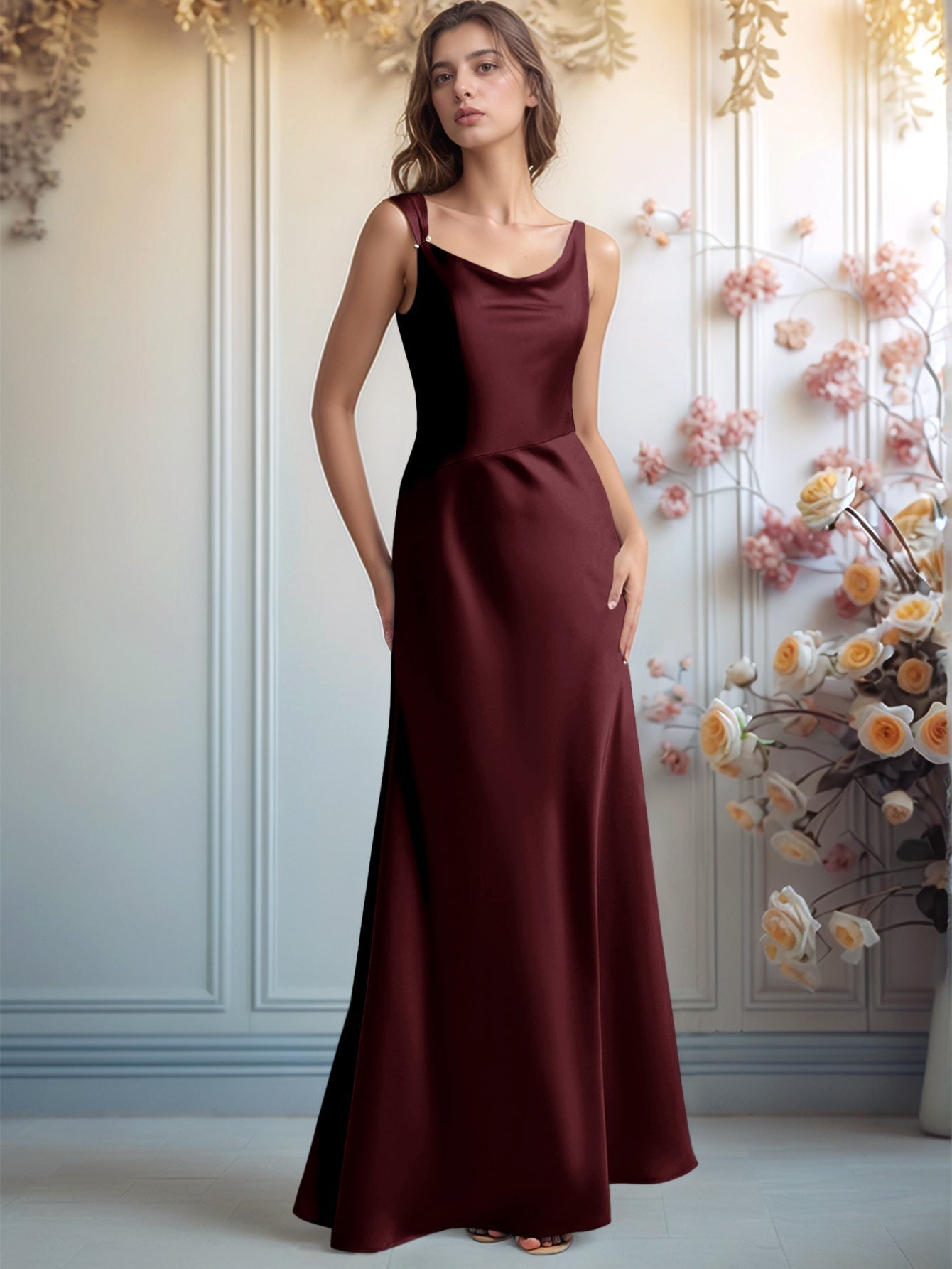 Scoop Satin Sheath Floor Length Bridesmaid Dress - Deep Burgundy