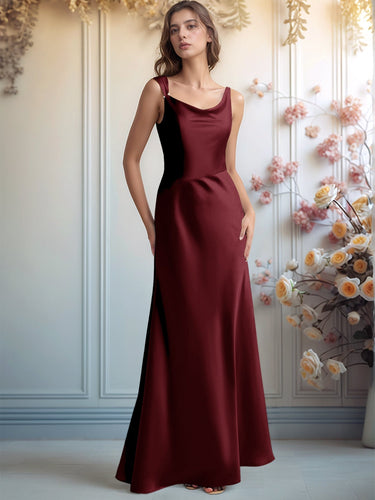 Scoop Satin Sheath Floor Length Bridesmaid Dress - Desert Rose