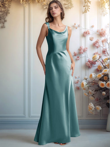 Scoop Satin Sheath Floor Length Bridesmaid Dress - Dusty Blue