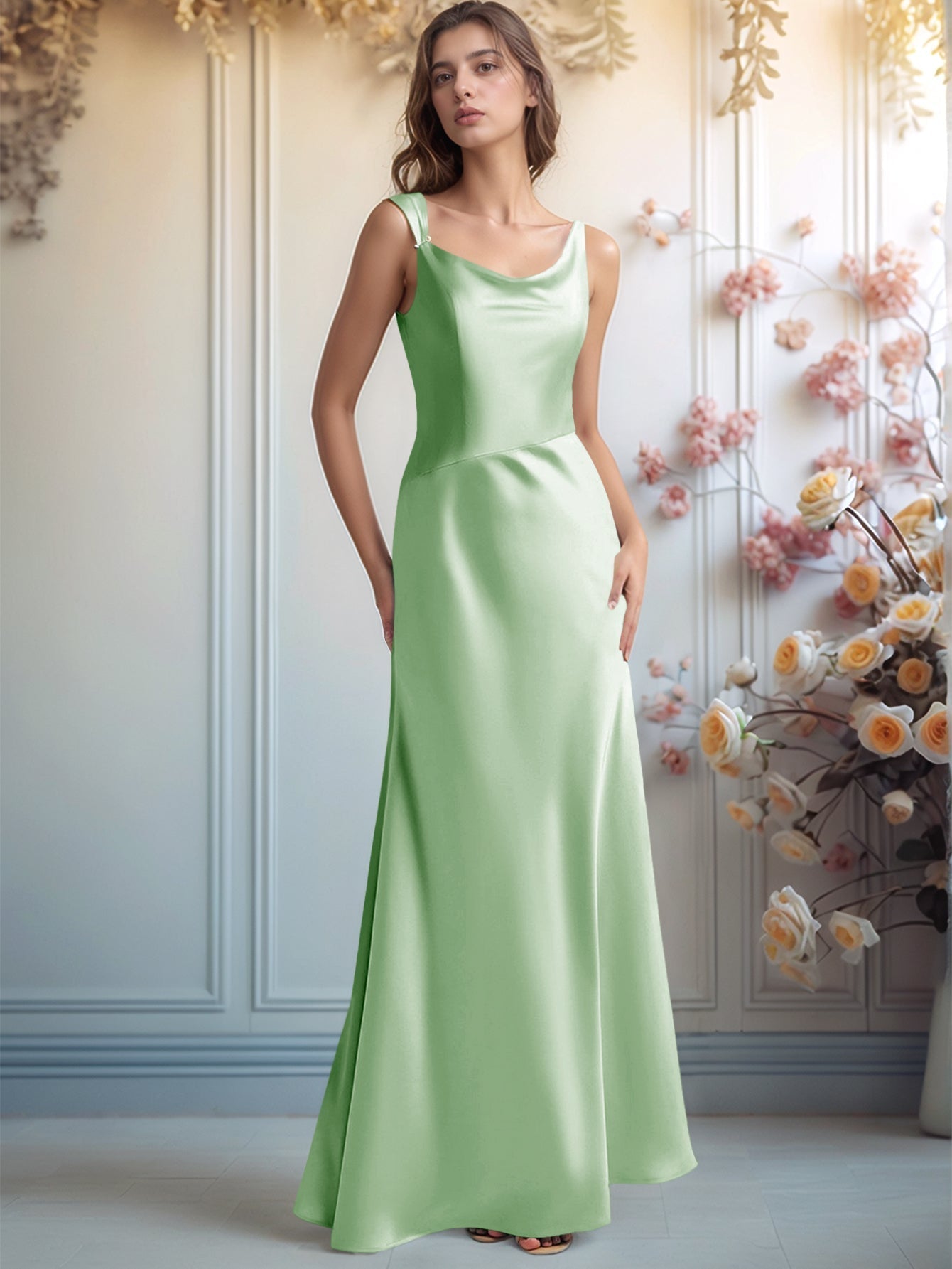 Scoop Satin Sheath Floor Length Bridesmaid Dress - Mint Green
