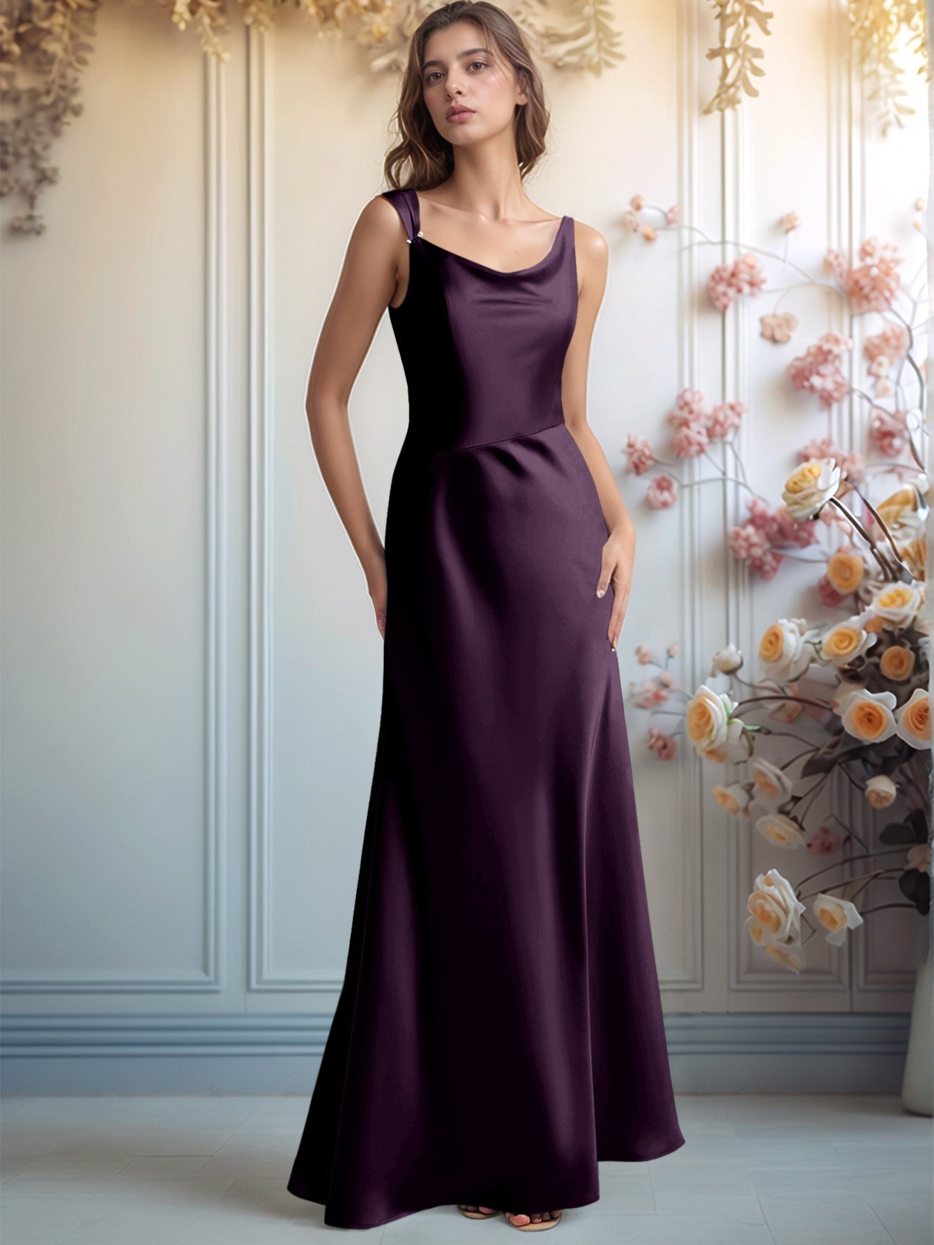 Scoop Satin Sheath Floor Length Bridesmaid Dress - Plum
