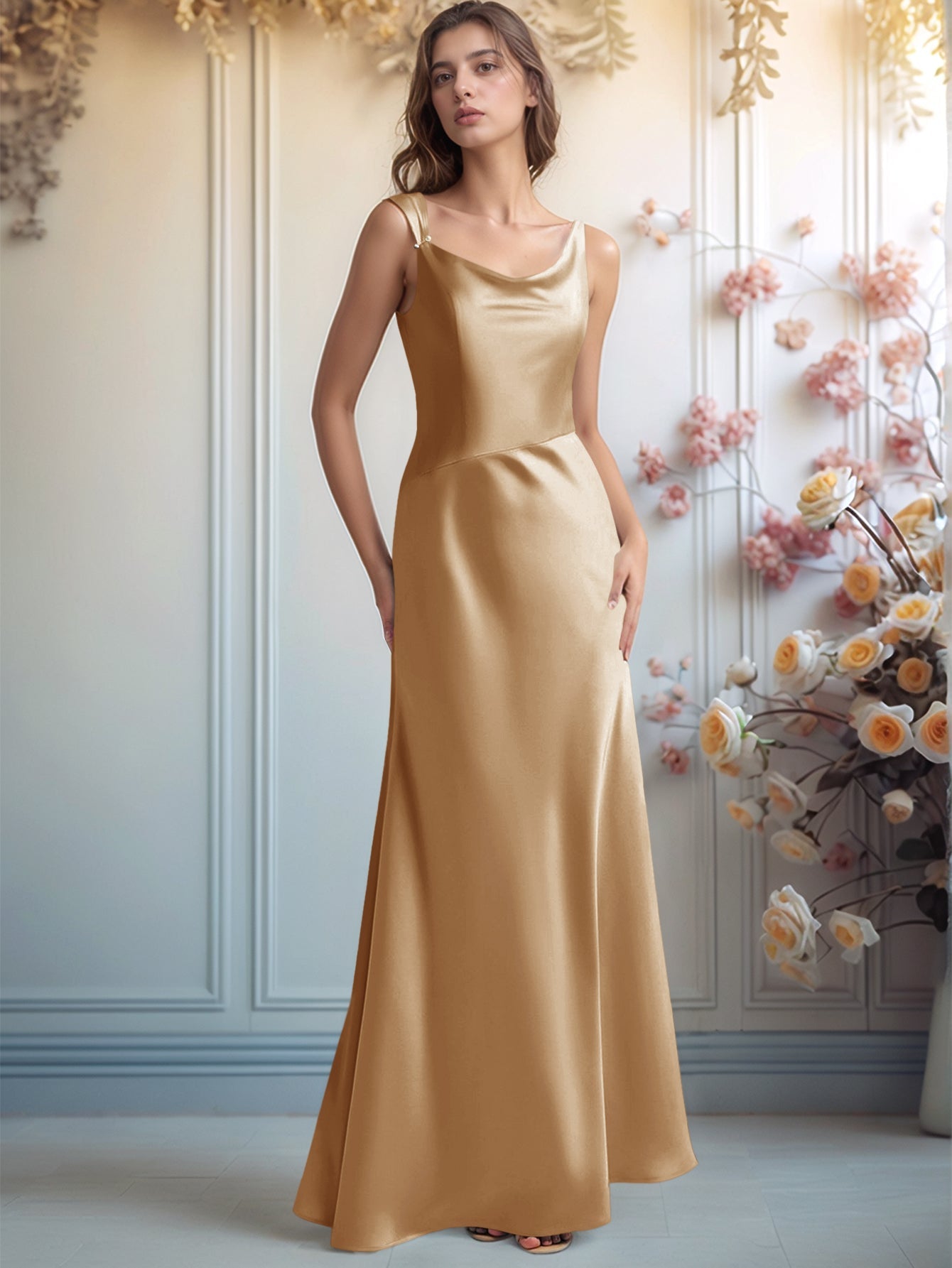 Scoop Satin Sheath Floor Length Bridesmaid Dress - Taupe