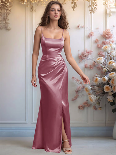 Scoop Waist Pleats Sheath Satin Bridesmaid Dress With Split - Mauve