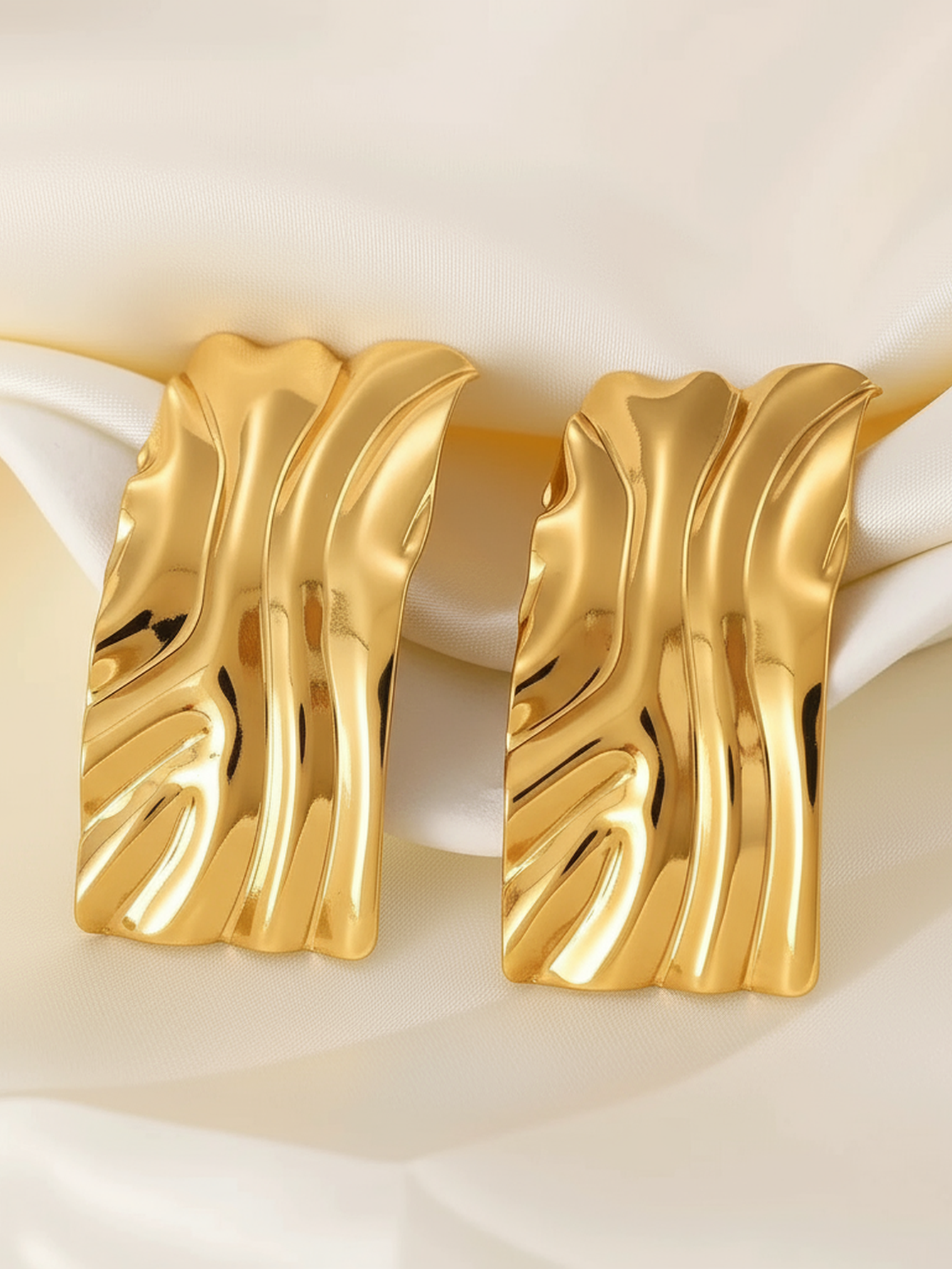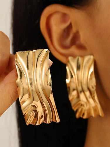 Geometric Cut Wave Pattern Rectangular Earrings - Gold