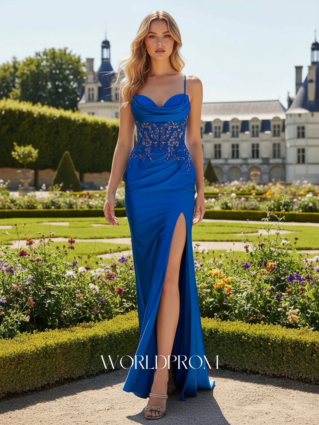 Spaghetti Shoulder Straps Sparkly Beading Long Mermaid Prom Dress - Royal Blue