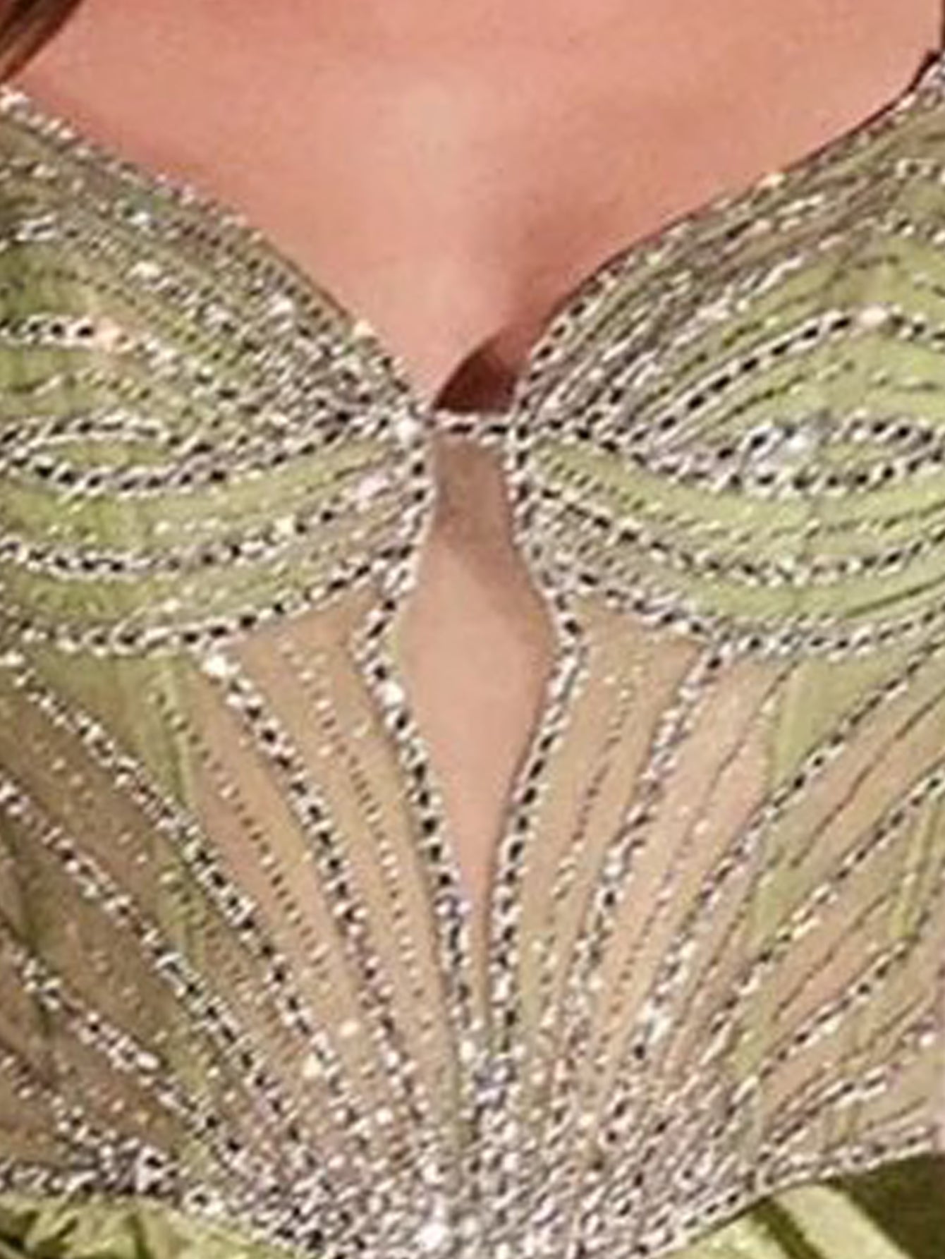 Spaghetti Strap Beading Ruched Lace Up Bodice Mermaid Prom Dress With Slit - Mint Green