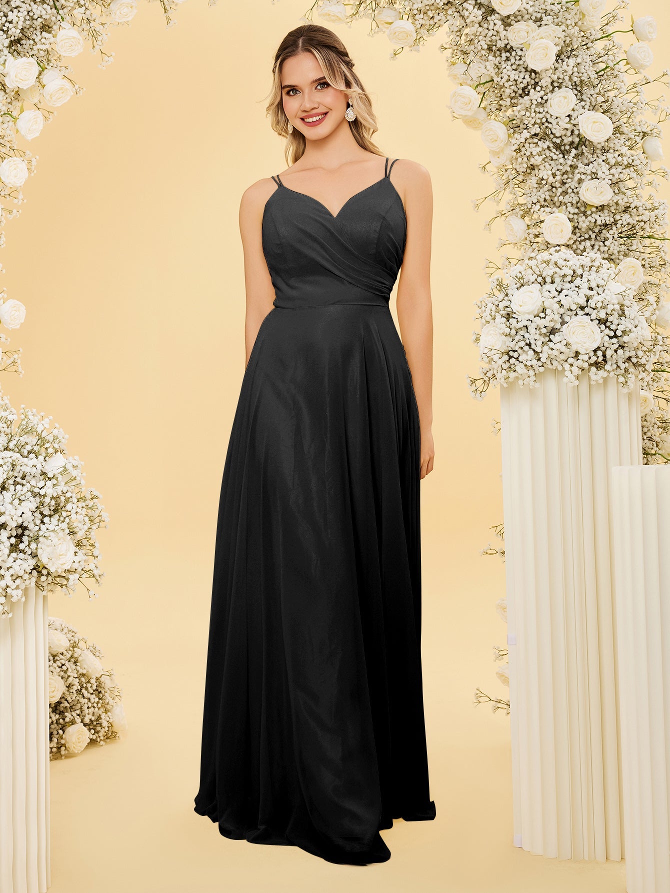 Spaghetti Strap Chiffon Hang Neck Bridesmaid Dress - Black