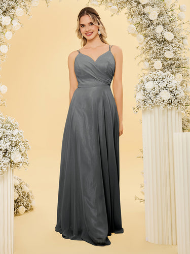 Spaghetti Strap Chiffon Hang Neck Bridesmaid Dress - Grey