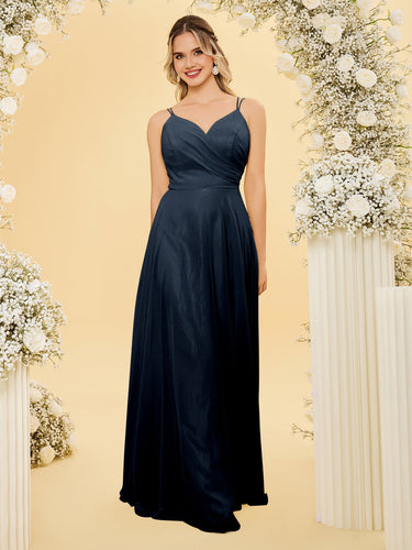 Spaghetti Strap Chiffon Hang Neck Bridesmaid Dress - Navy Blue