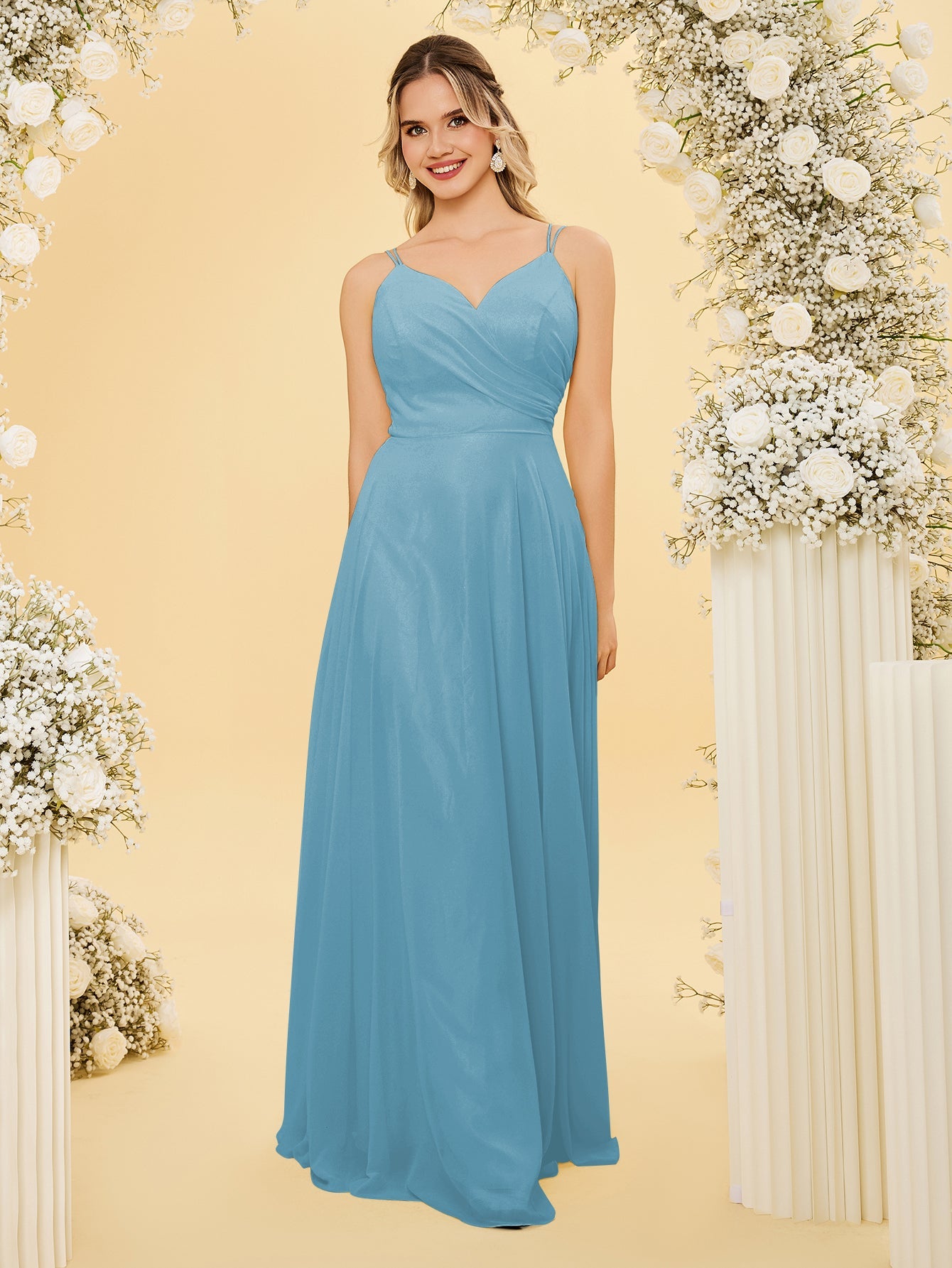 Spaghetti Strap Chiffon Hang Neck Bridesmaid Dress - Sky Blue