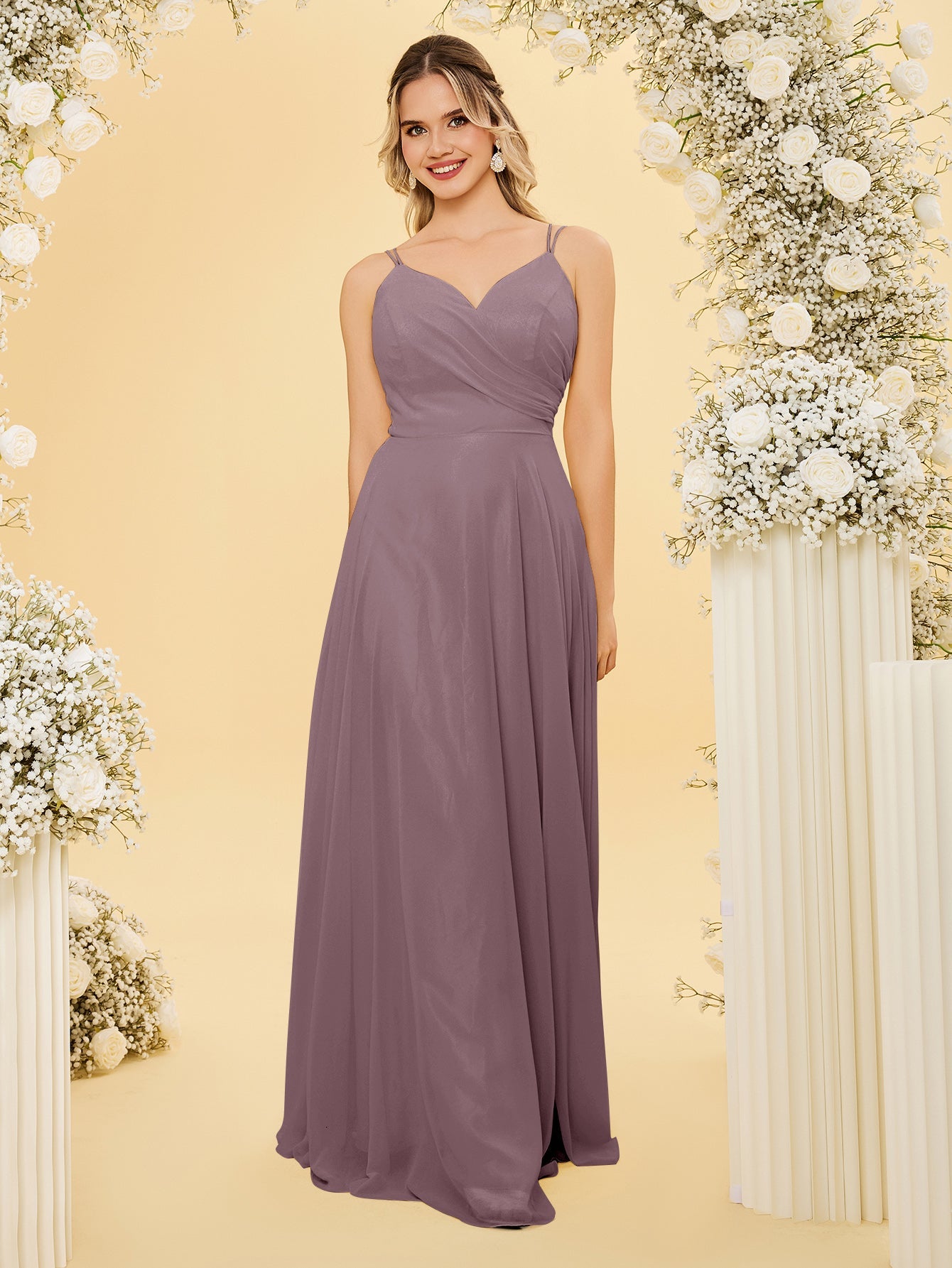 Spaghetti Strap Chiffon Hang Neck Bridesmaid Dress - Wisteria