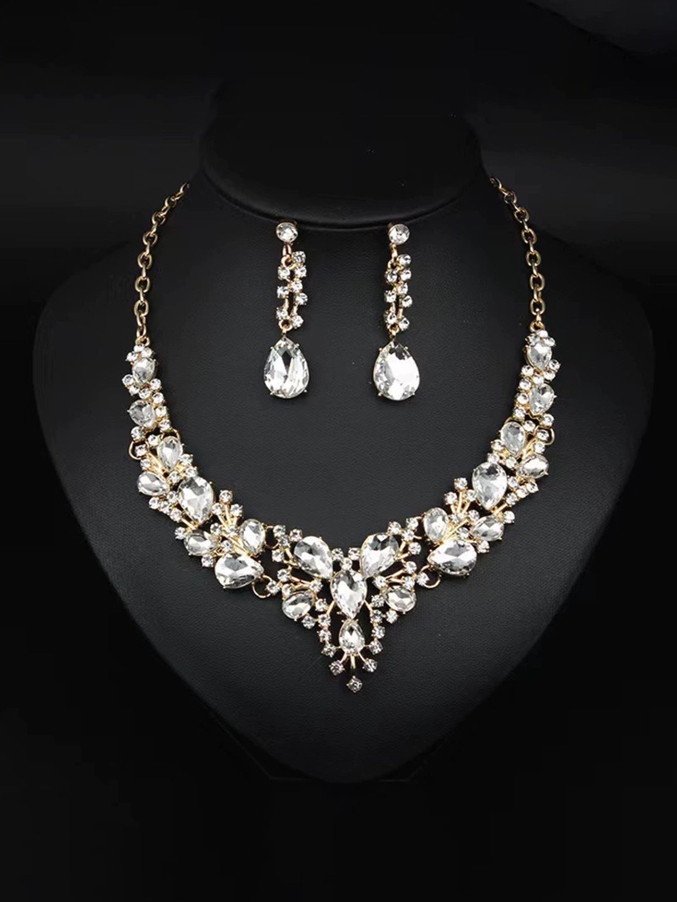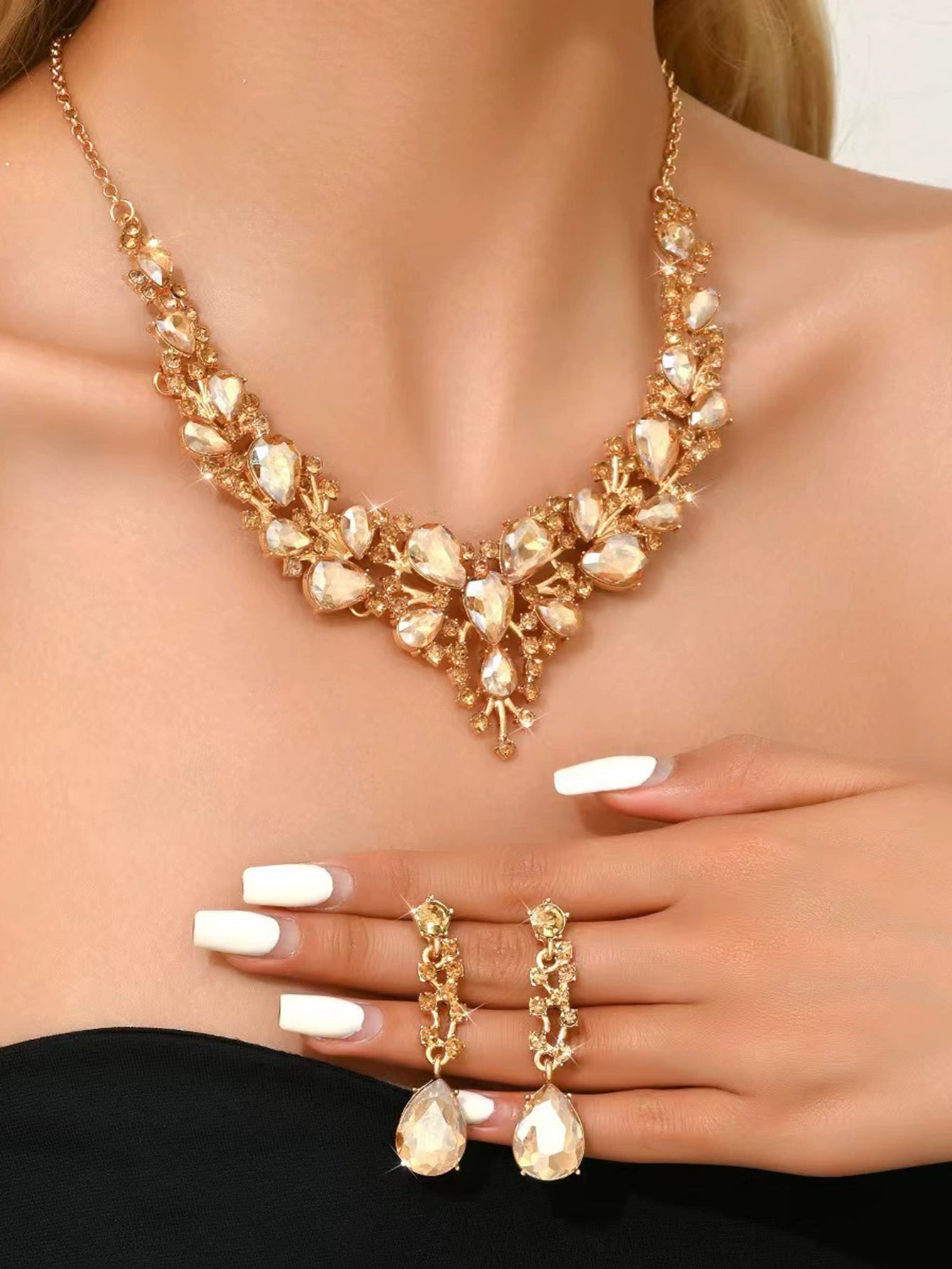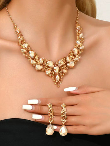 Luxury Crystal Tree-Shaped Necklace and Earring Set - Gold