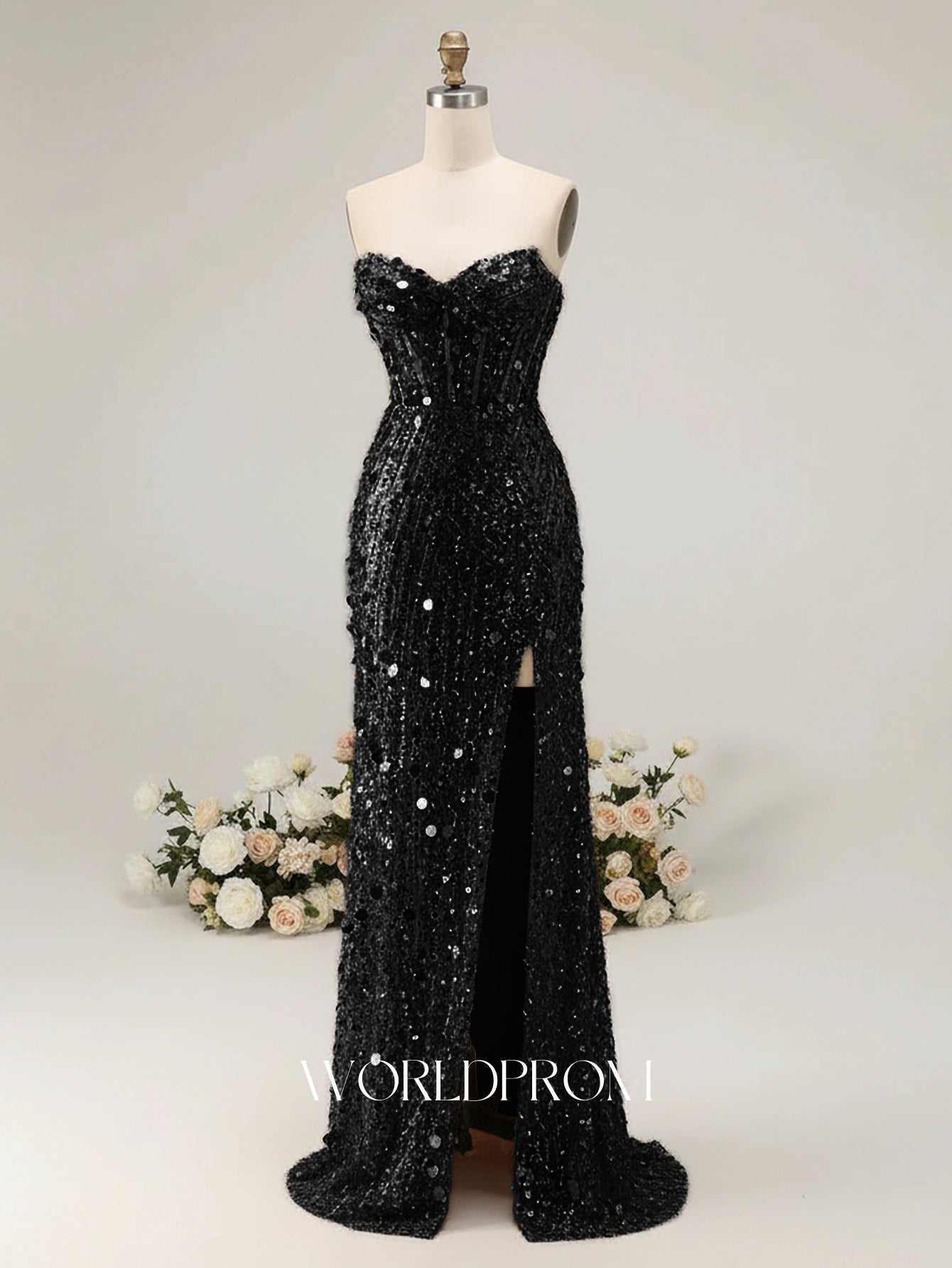 This tulle prom gown features sparkly beading with sheer on the bodice. The strapless dress has a V-Neck and split hem. Worldprom mermaid prom dresses are ideal for party, evening or festivals.