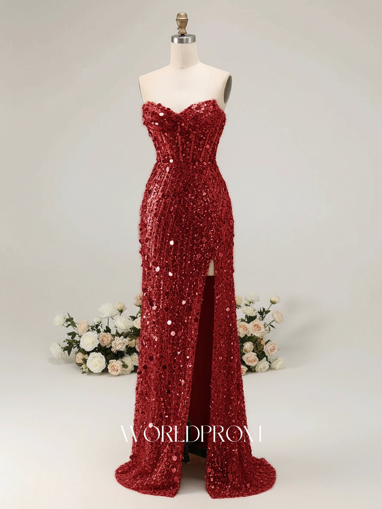 Details: Sparkly, Beading, Sheer, Illusion, Split, Corset