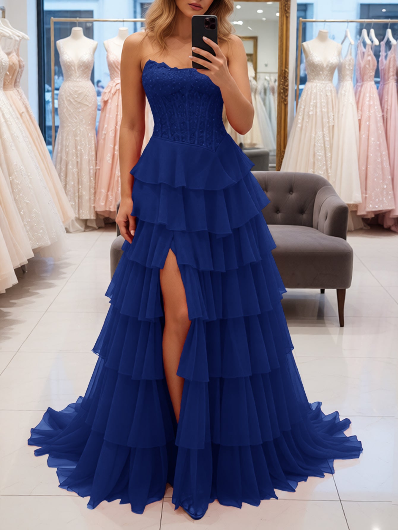 Details: Sparkly, Beading, Embroidery, Ruffled, Split, Backless, Lace Up