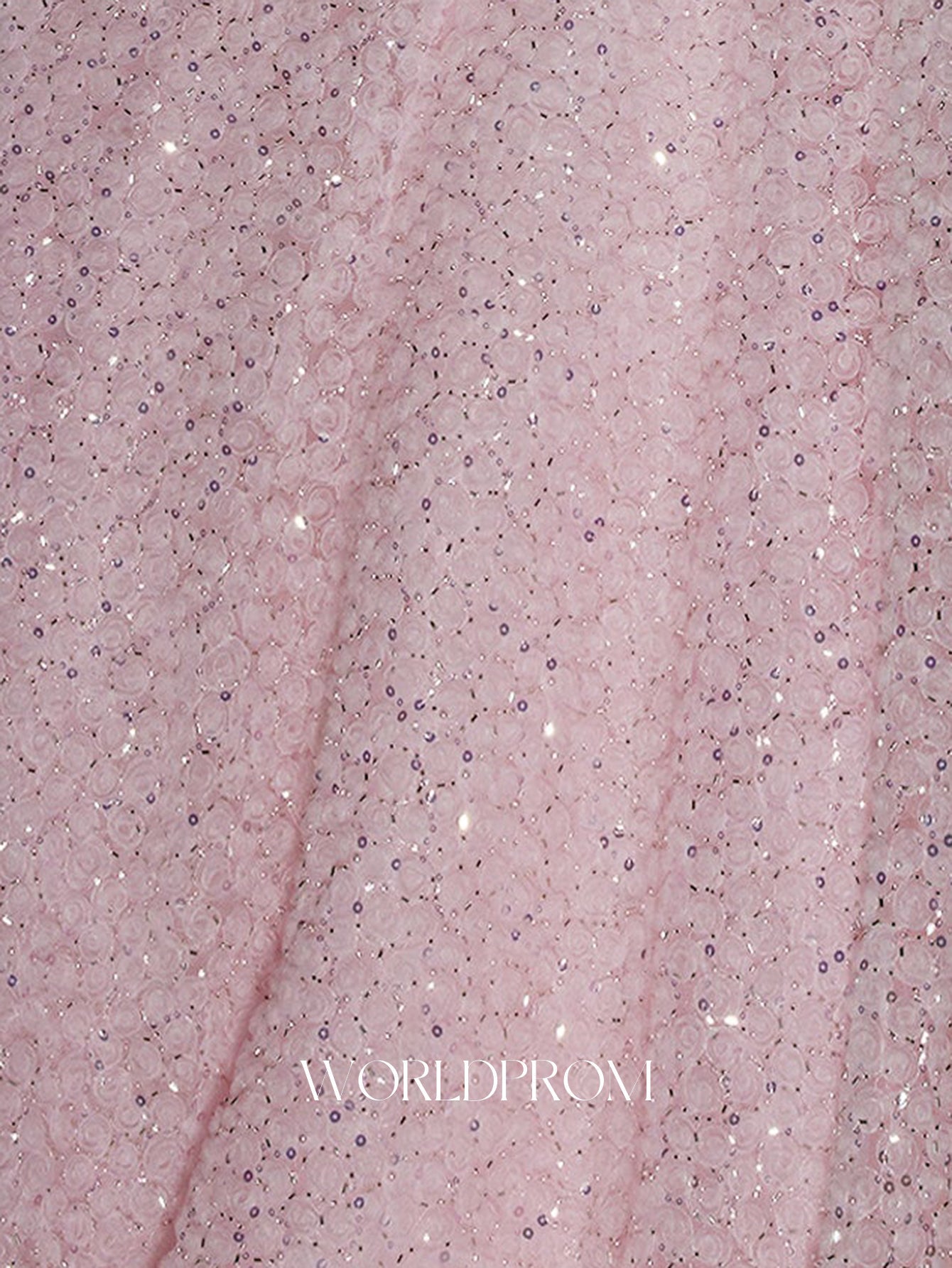 Sparkly Beading Illusion Floral Pleated A-Line Long Prom Dress With Slit - Blush Pink