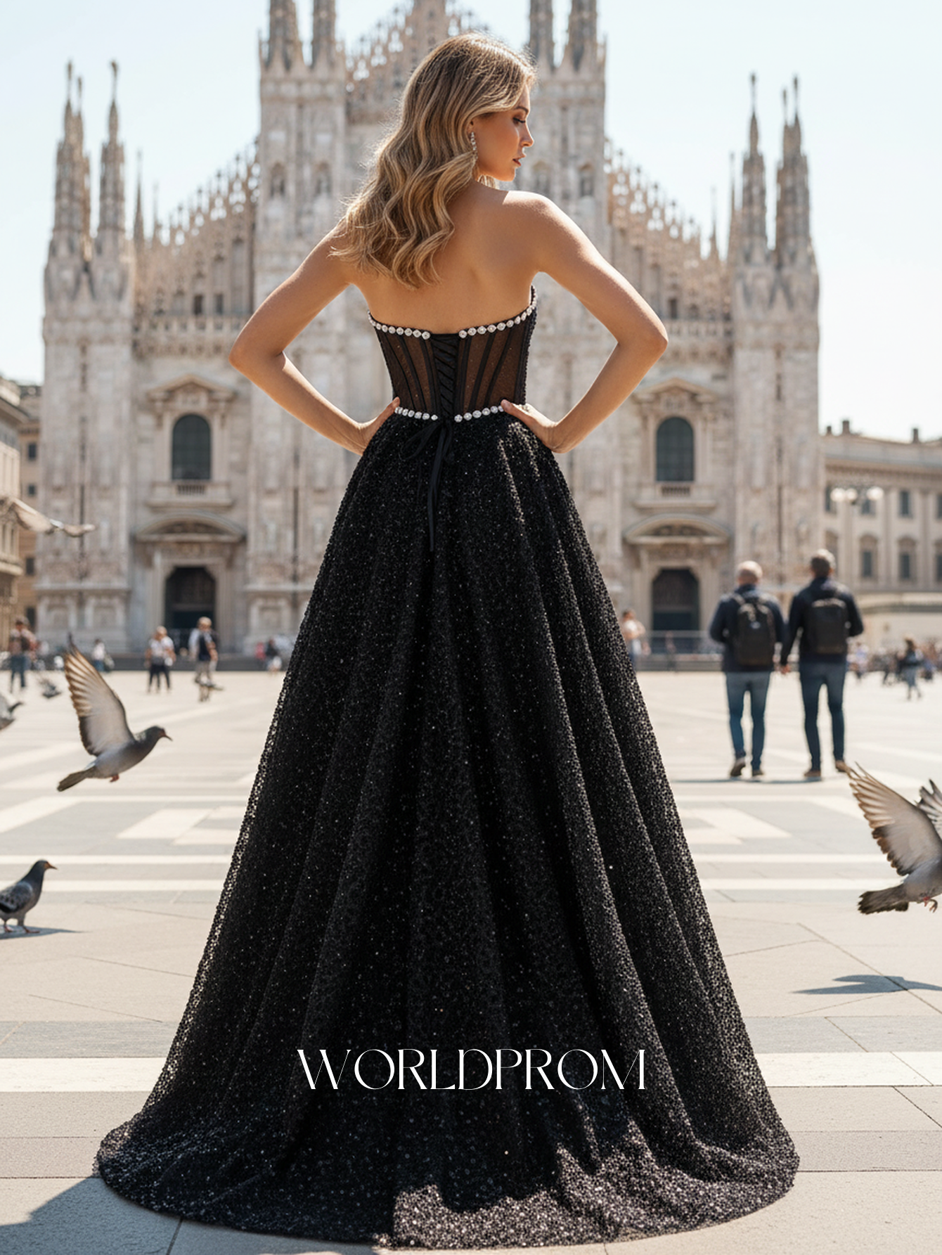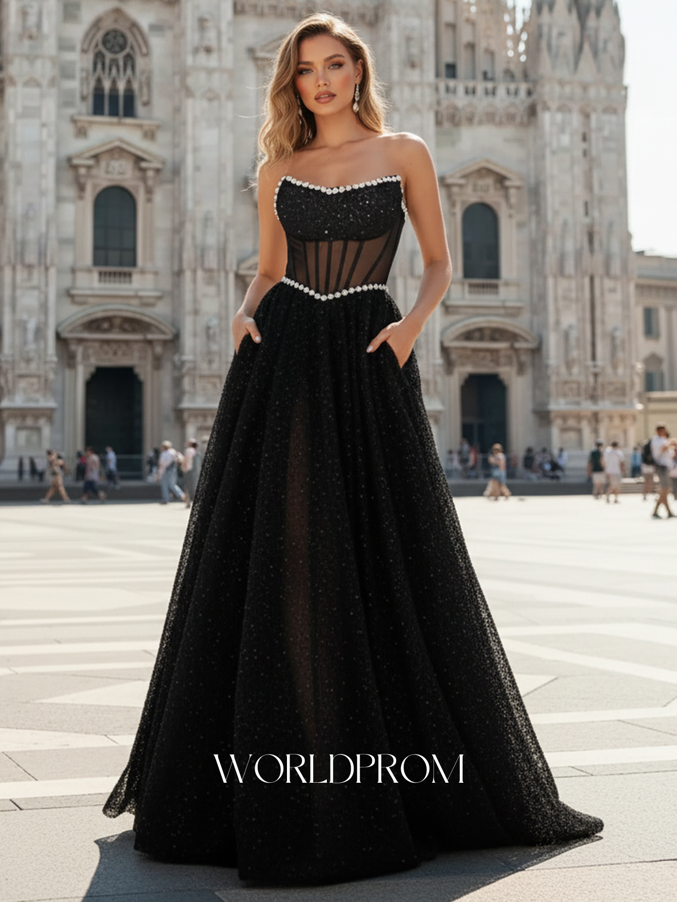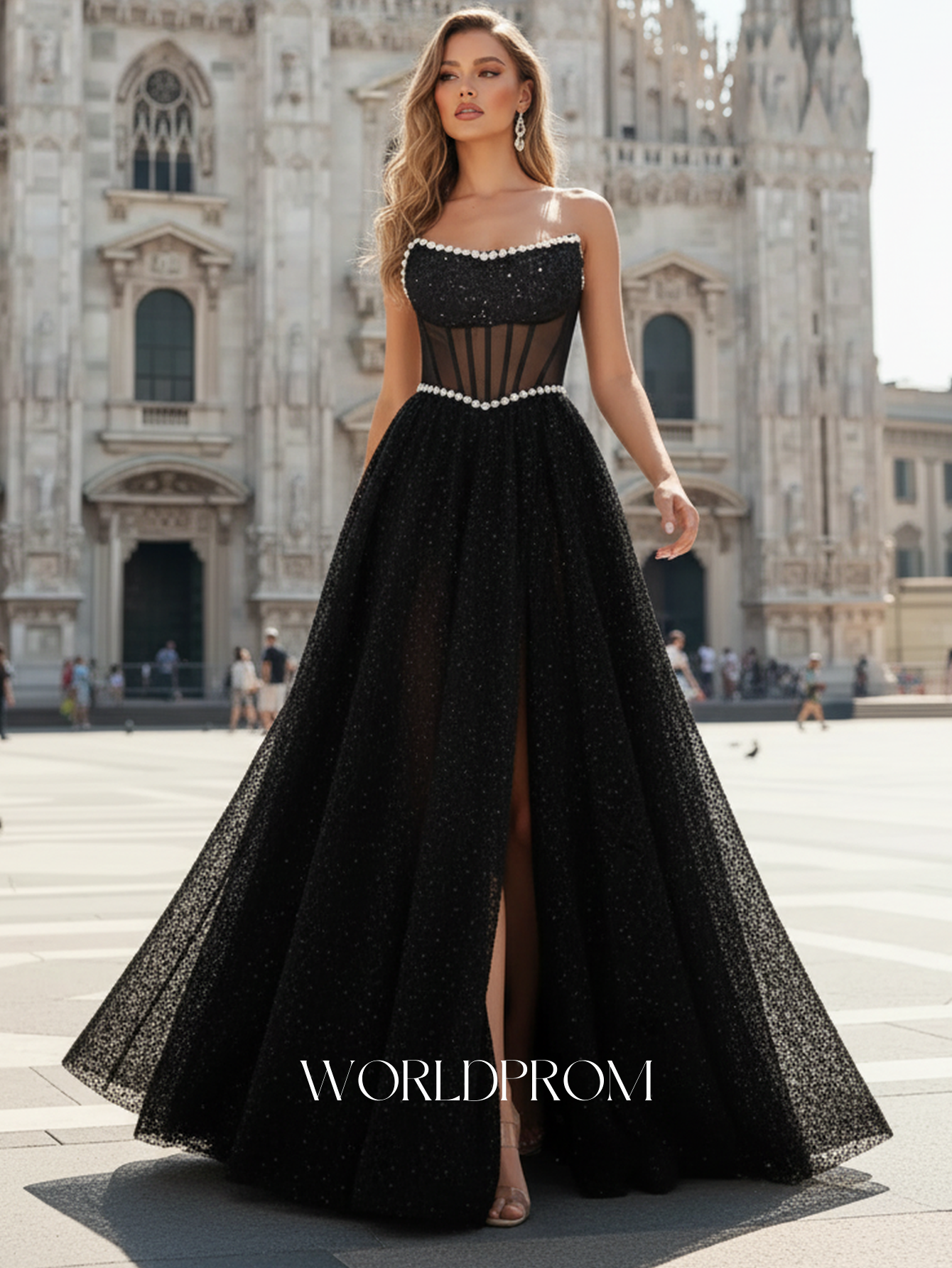 Details: Corset, Sparkly, Beading, Sheer, Illusion, Pleated, Split