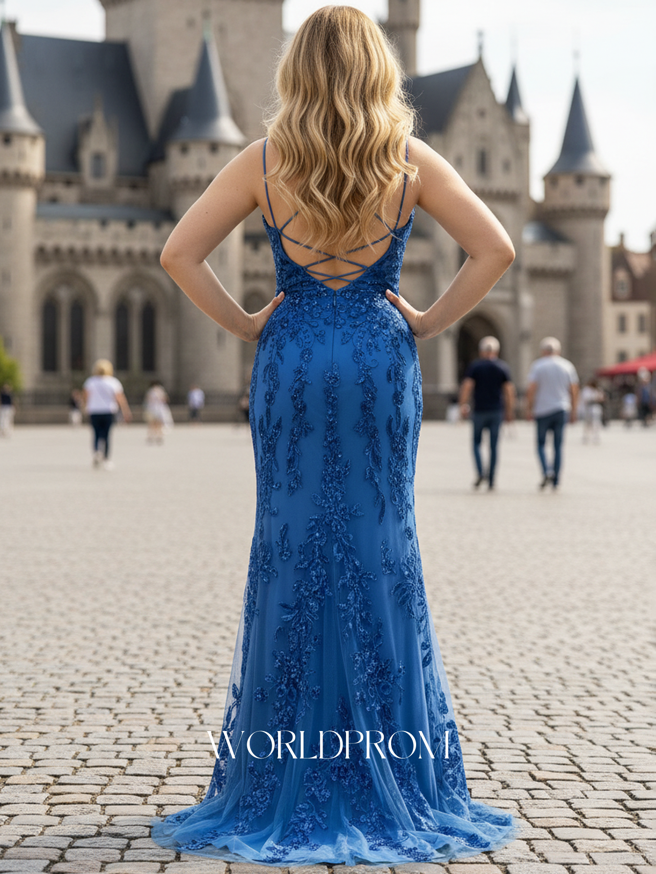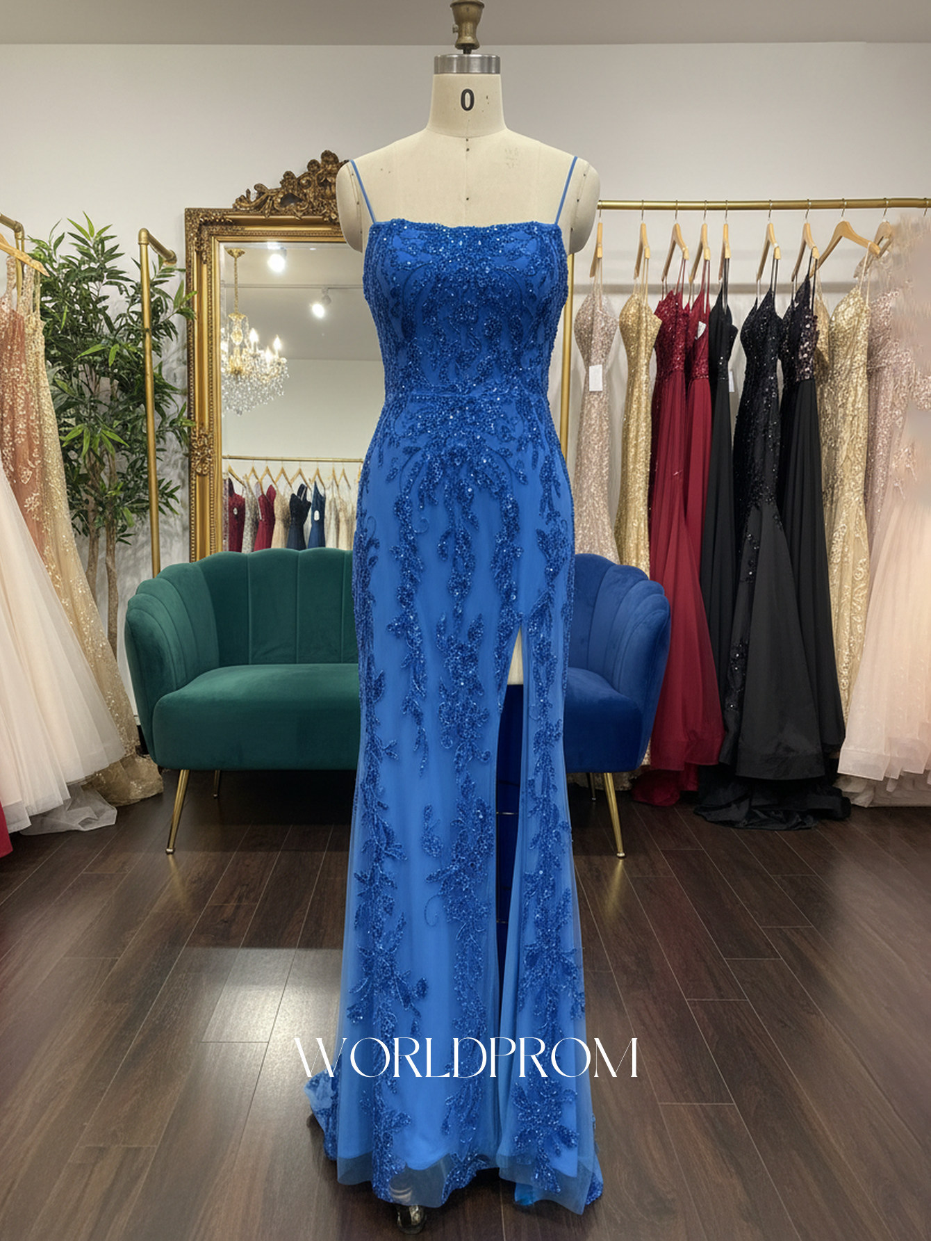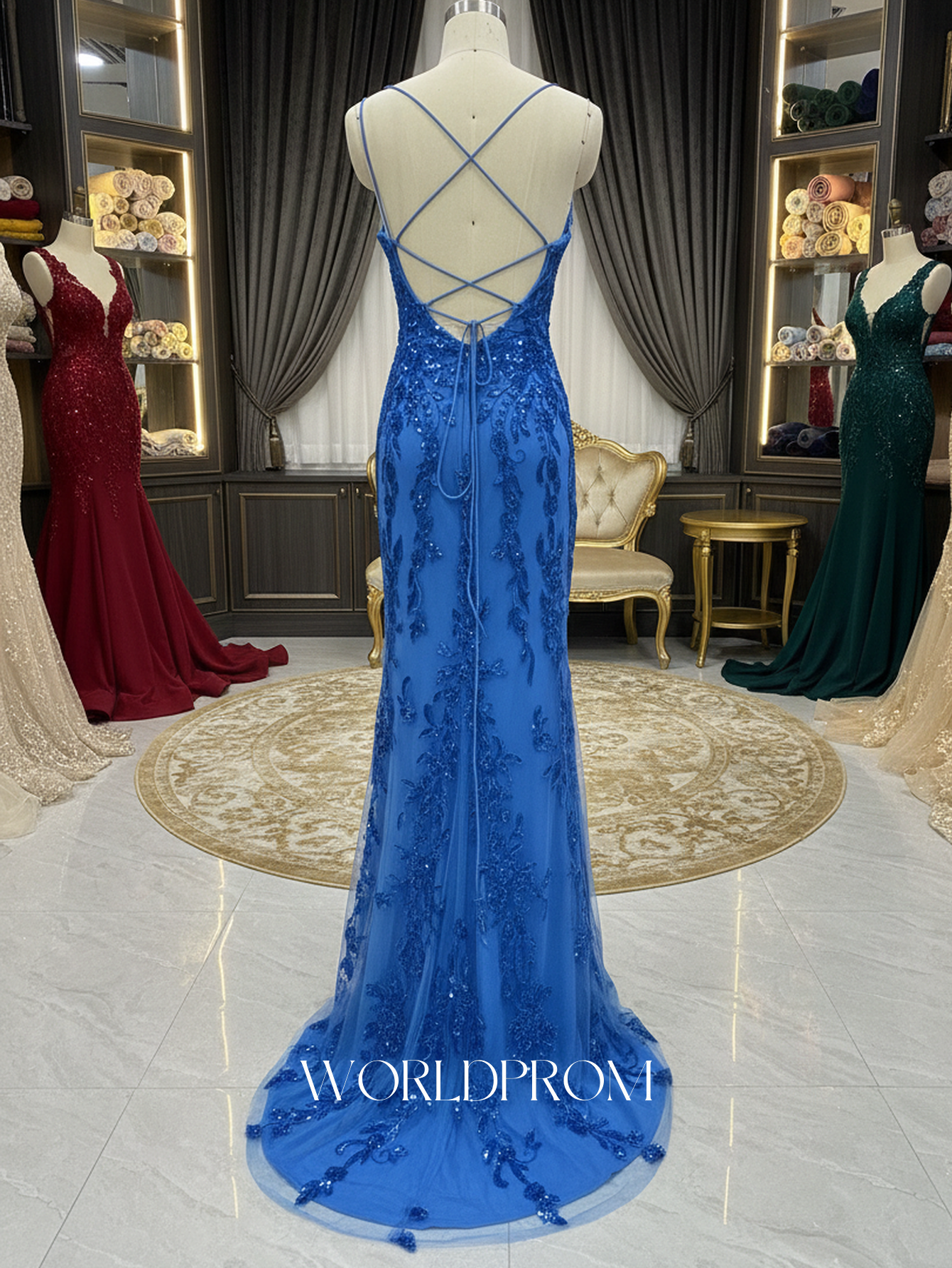 This tulle prom gown features sparkly beading on the bodice. The backless dress has a scoop neckline and split hem. Worldprom mermaid prom dresses are ideal for party, evening or festivals.