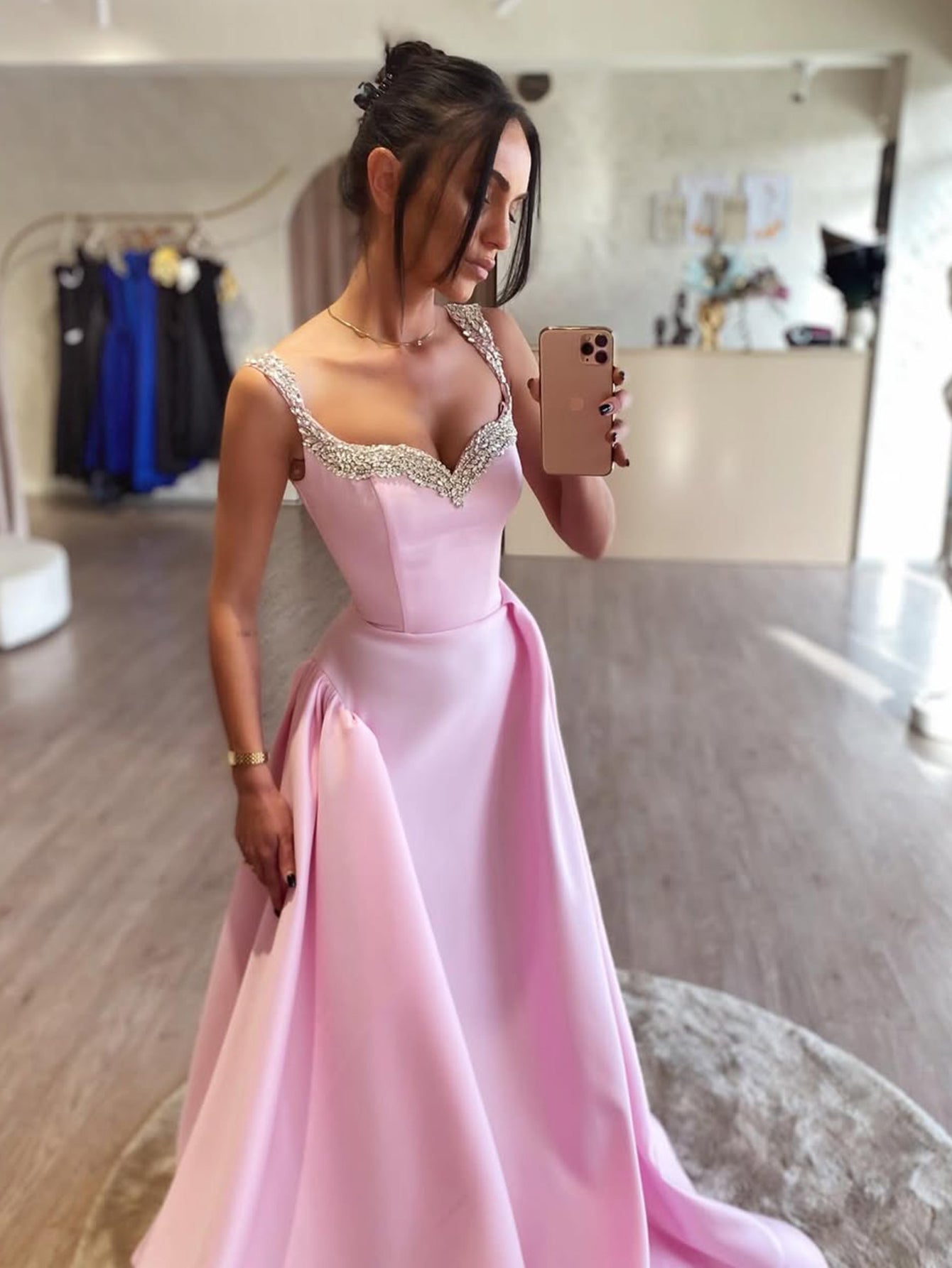 Sparkly Tank Sweetheart Long Prom Dress - Pink