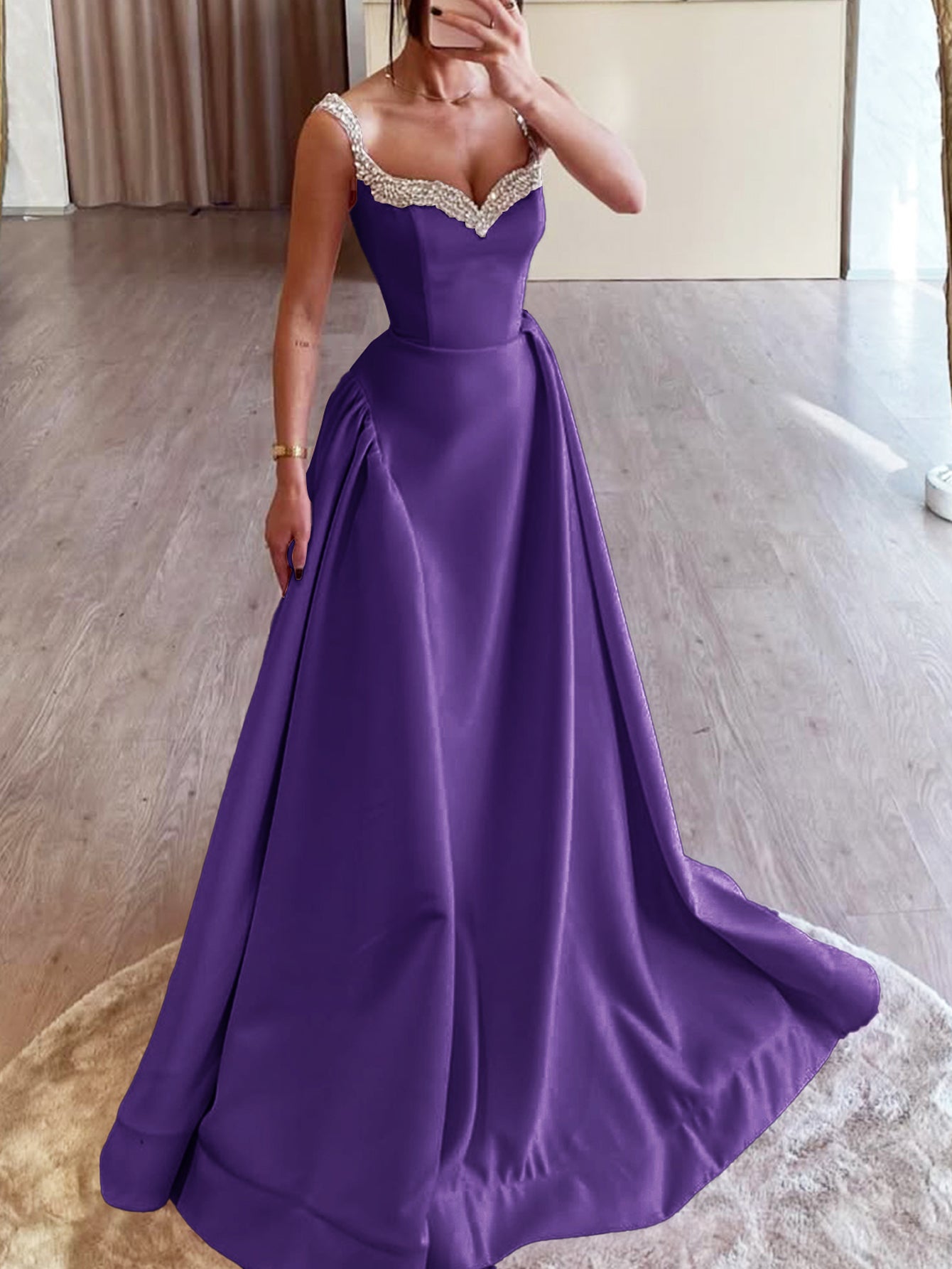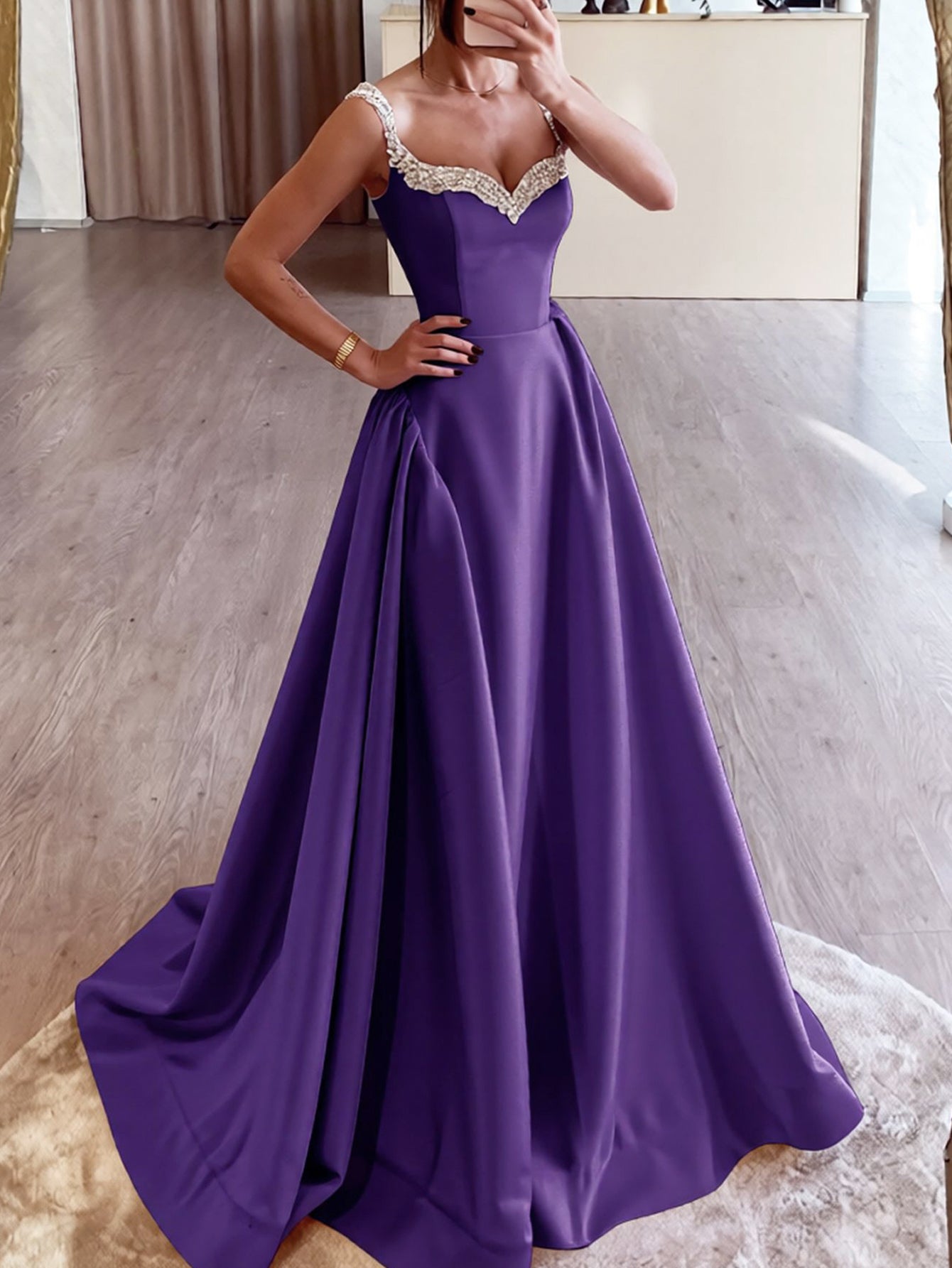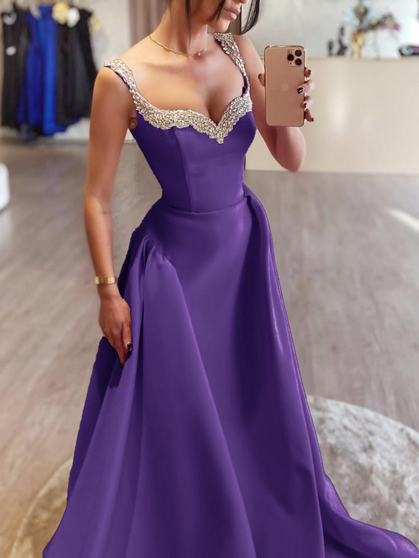 Sparkly Tank Sweetheart Long Prom Dress - Purple