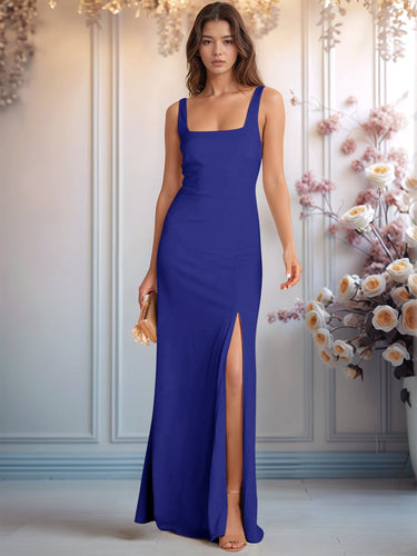 Square Sheath Floor Length Bridesmaid Dress With Split - Royal Blue