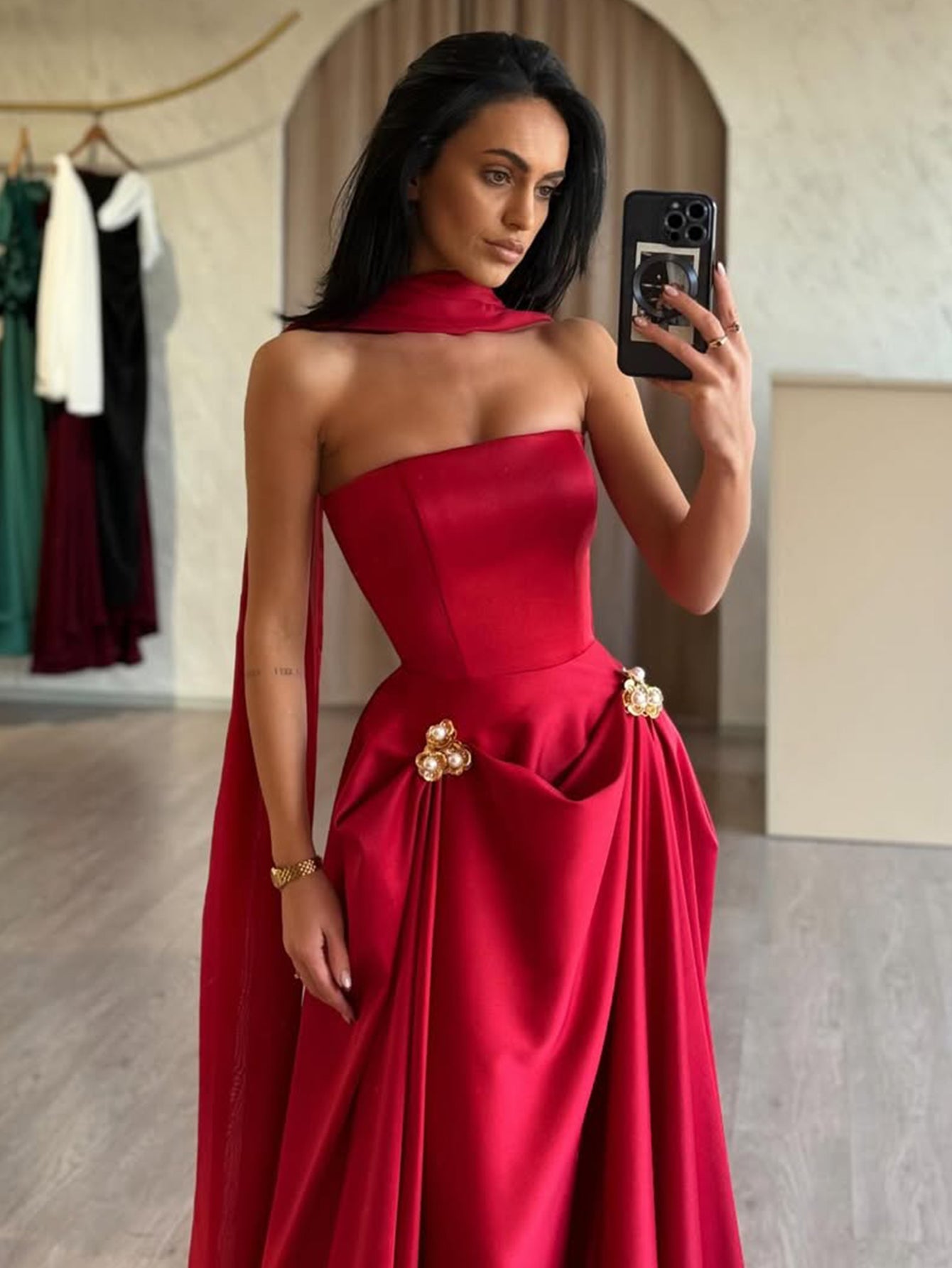 Strapless Ball Gown Prom Dress With Shawl - Red