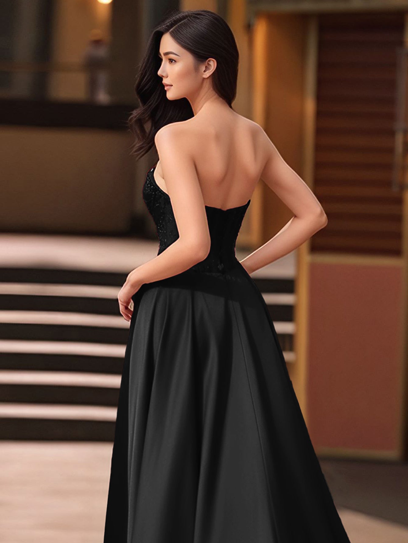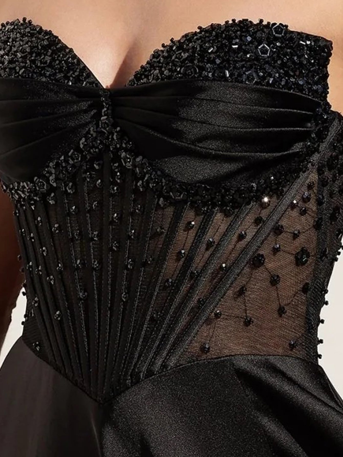 Strapless Beading Illusion Ruched Bodice Mermaid Prom Dress - Black