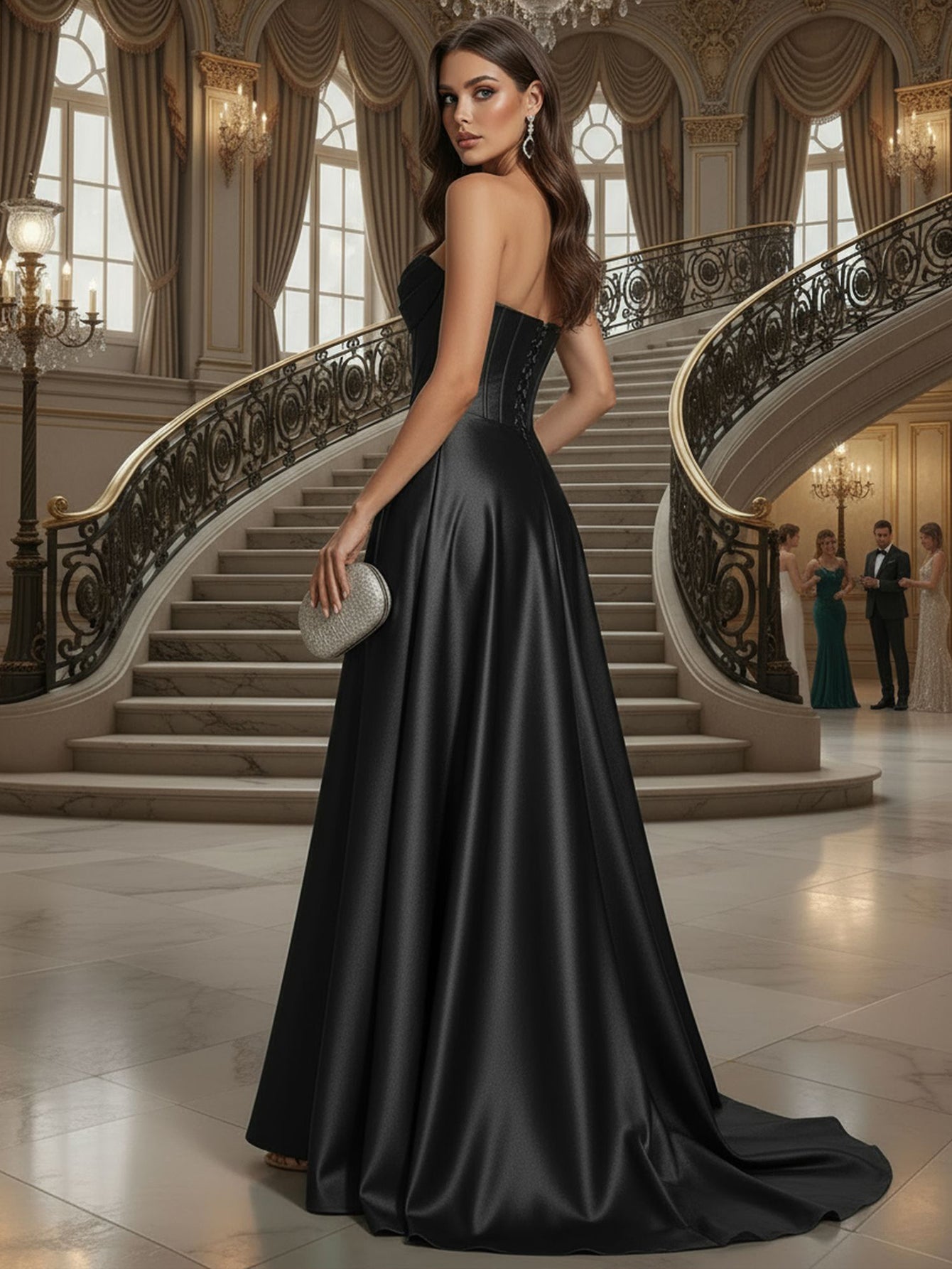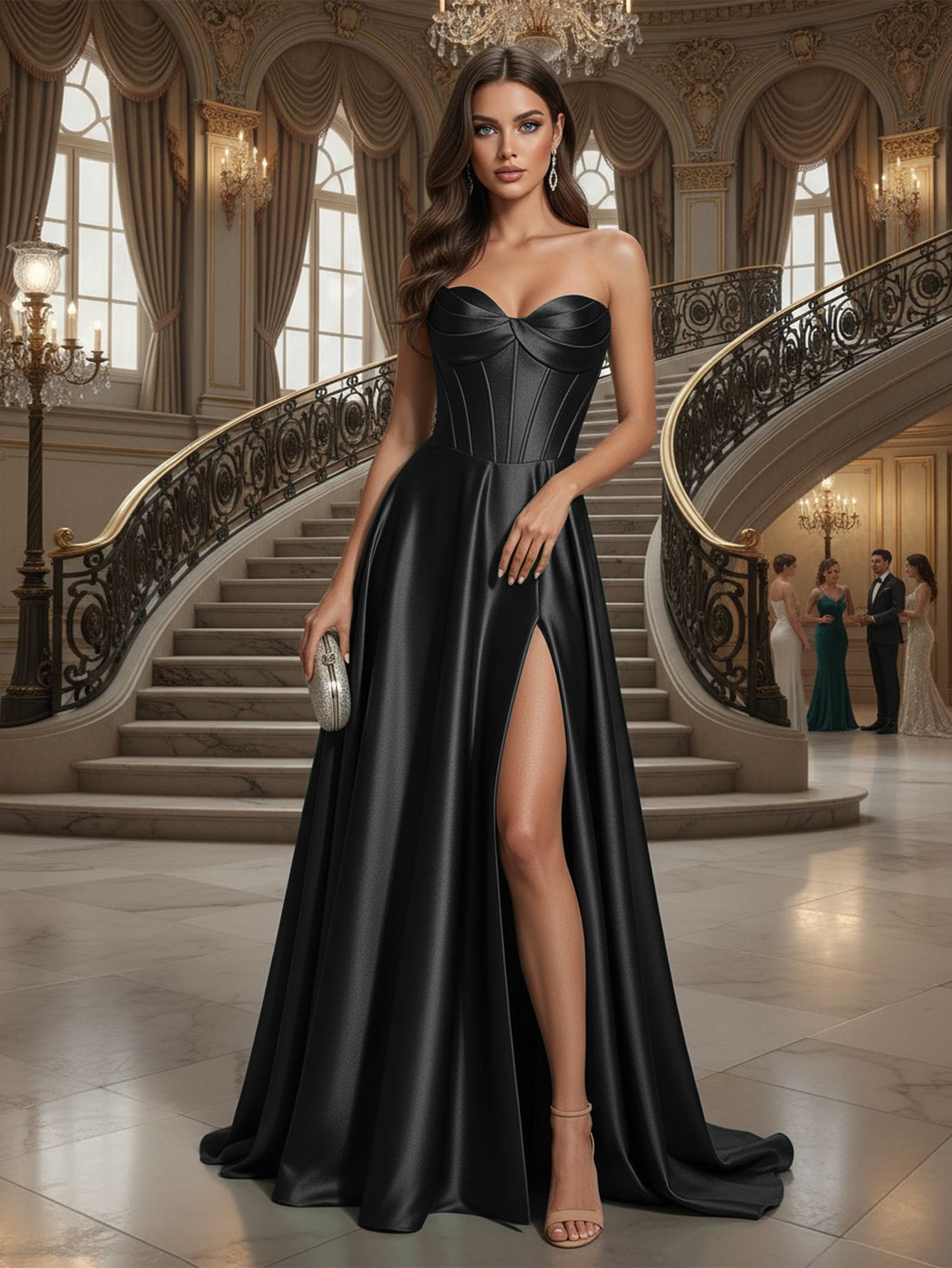 Strapless Bodice Split Prom Dress With Pocket - Black