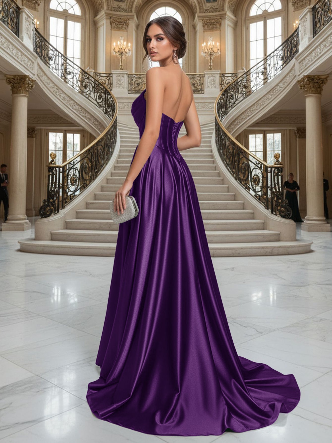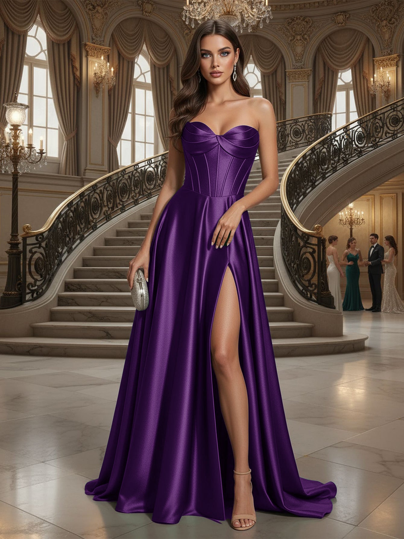 Strapless Bodice Split Prom Dress With Pocket - Purple