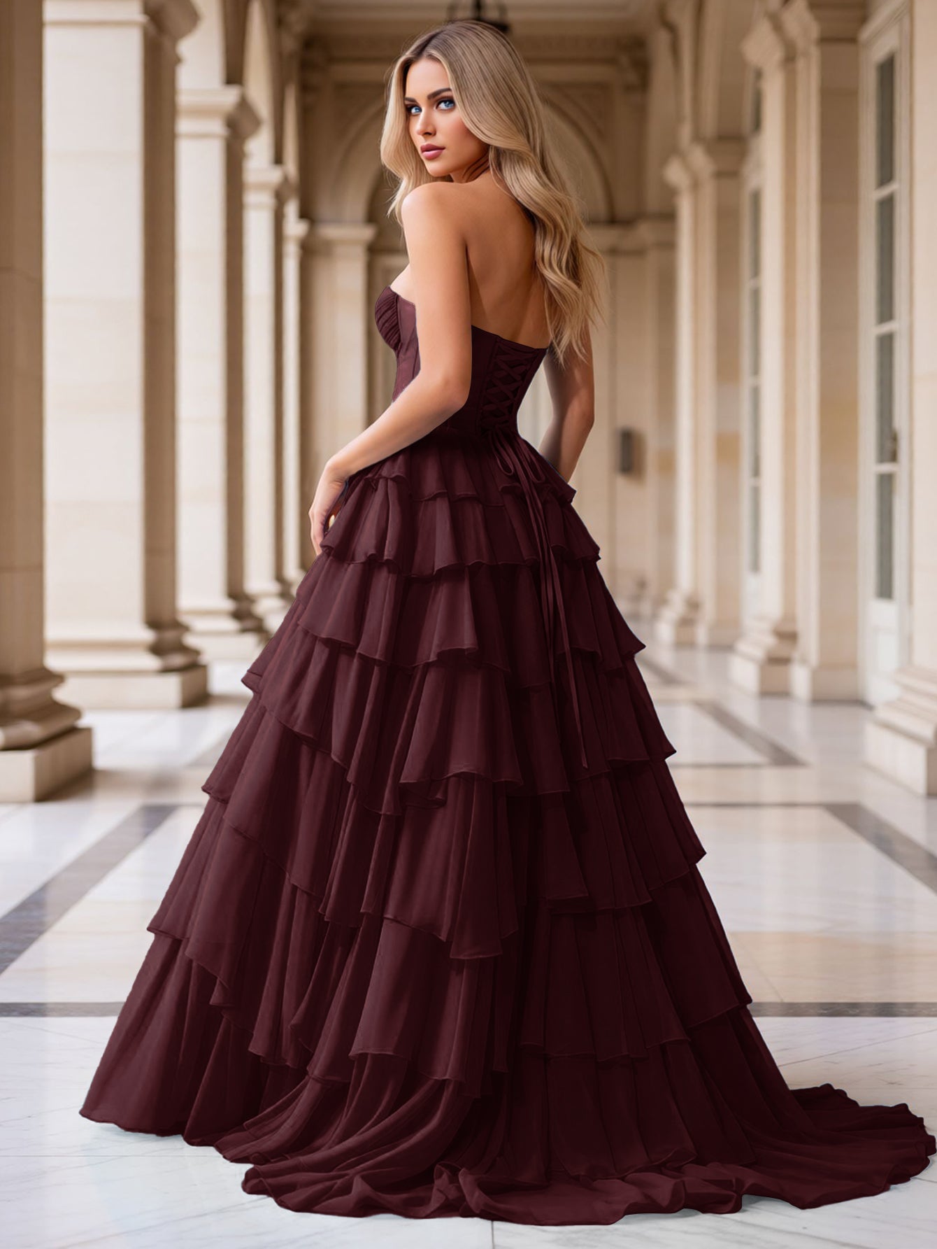 This gorgeous gown features crystal and ruched bust on the bodice. The strapless prom dress has a sweetheart neckline and lace up back. This ball gown evening dress for cocktail is ideal for party, evening or festivals.