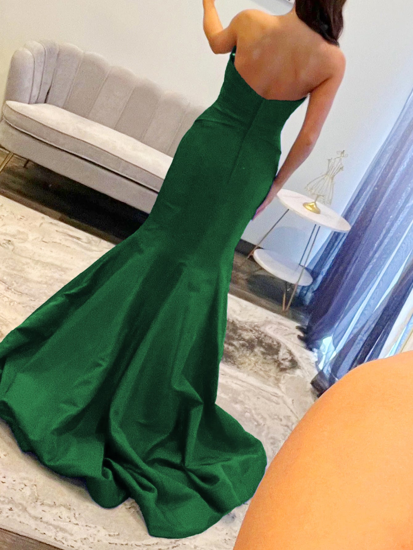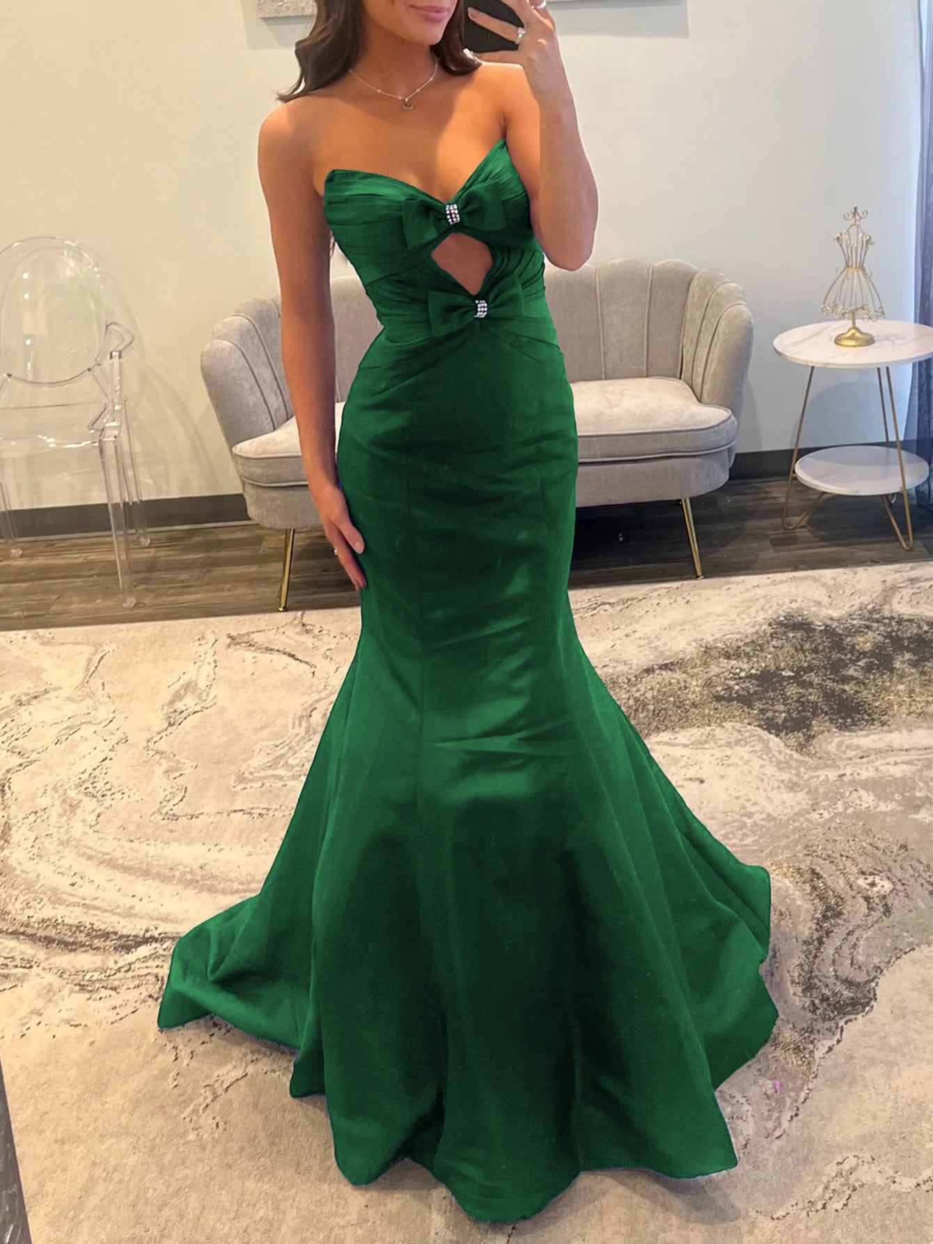 Strapless Cut Front Bows Mermaid Prom Dress - Emerald Green