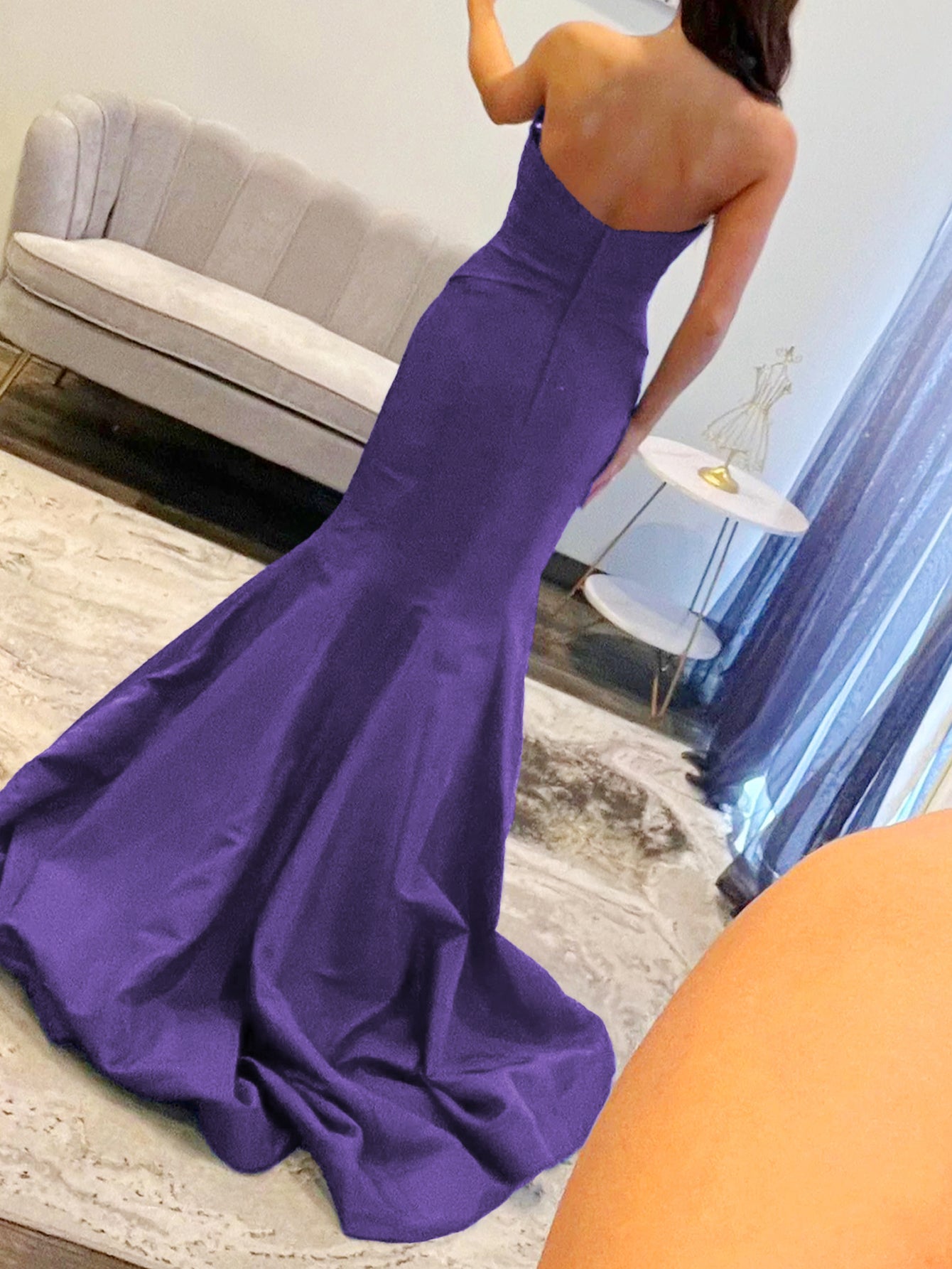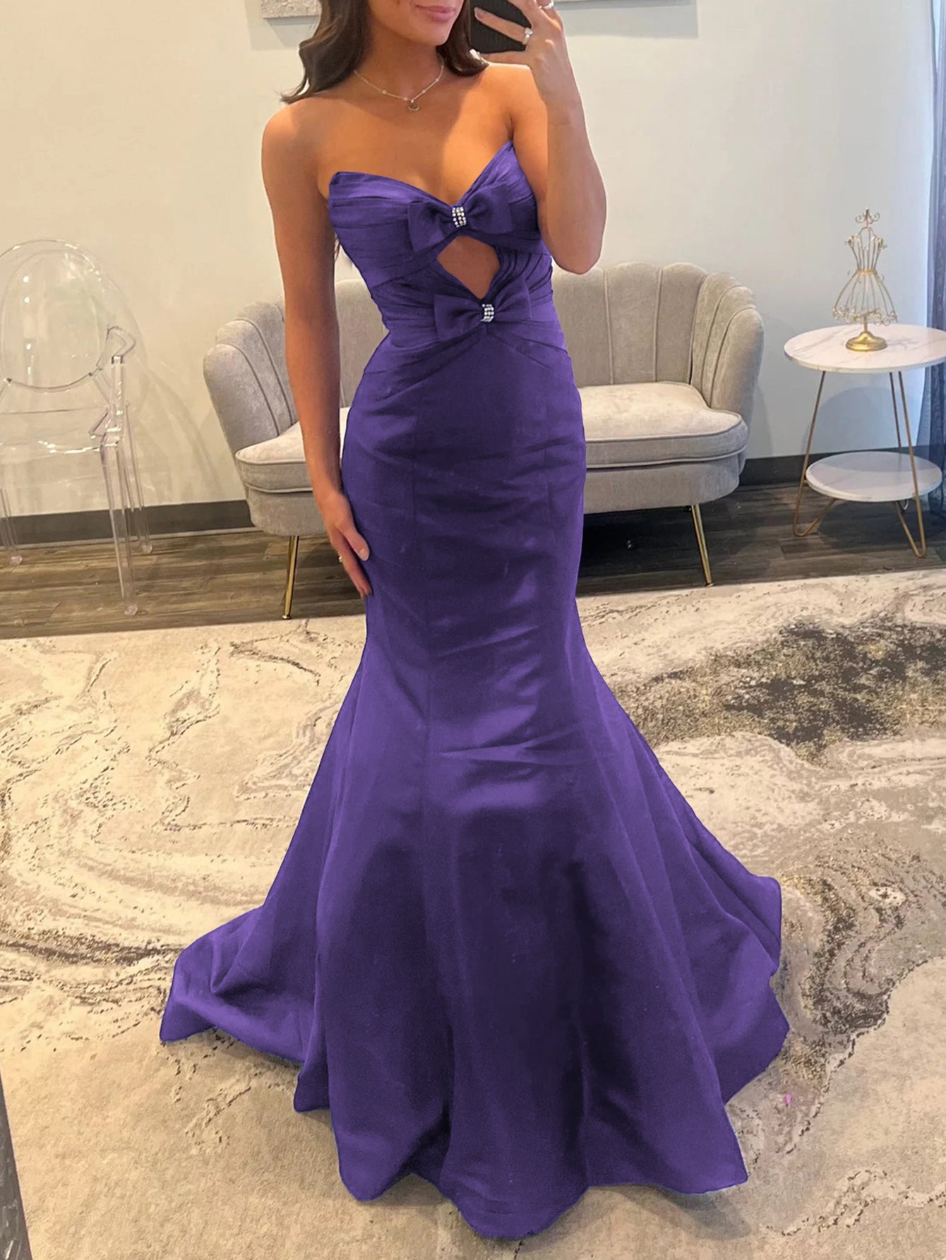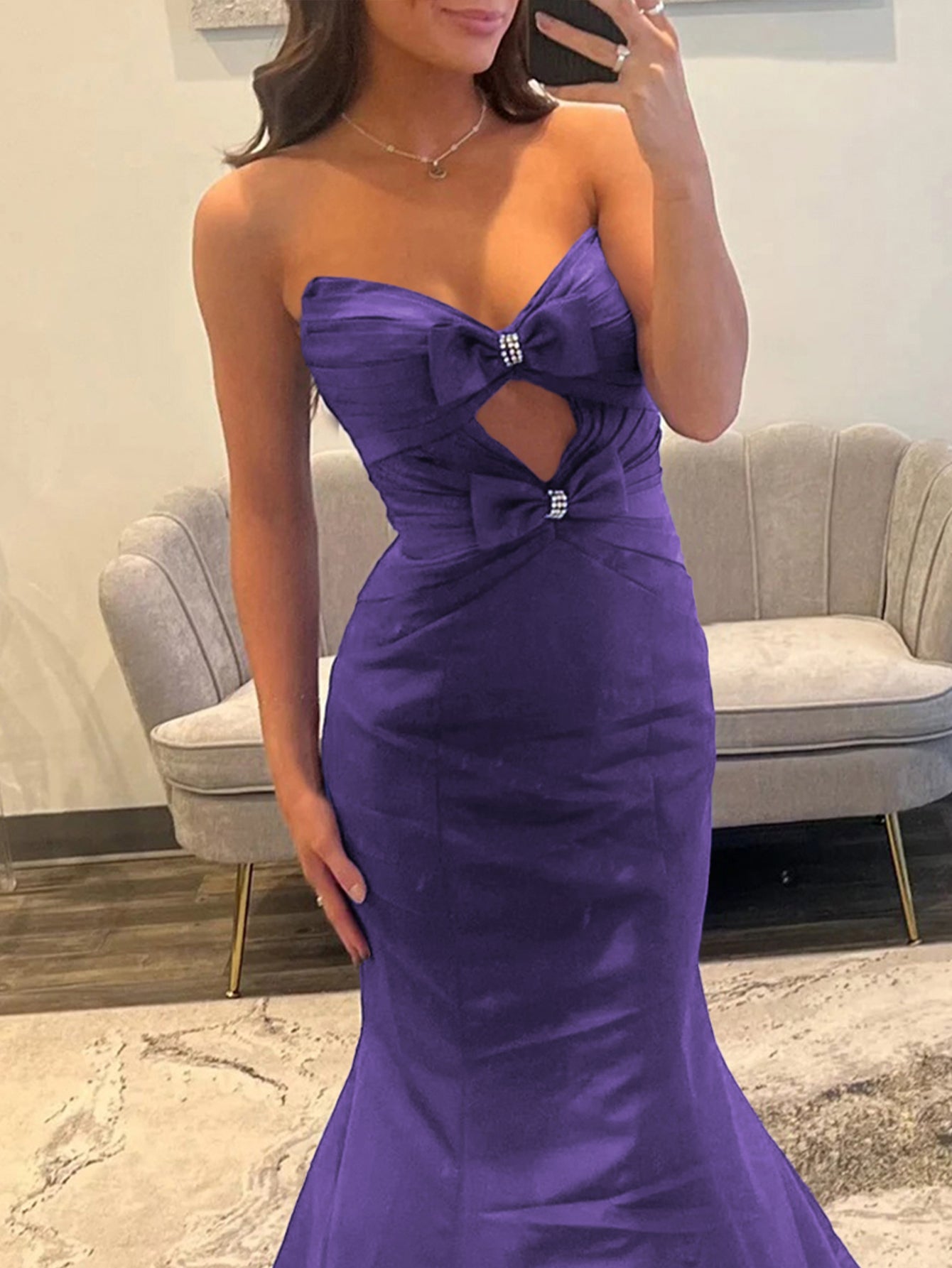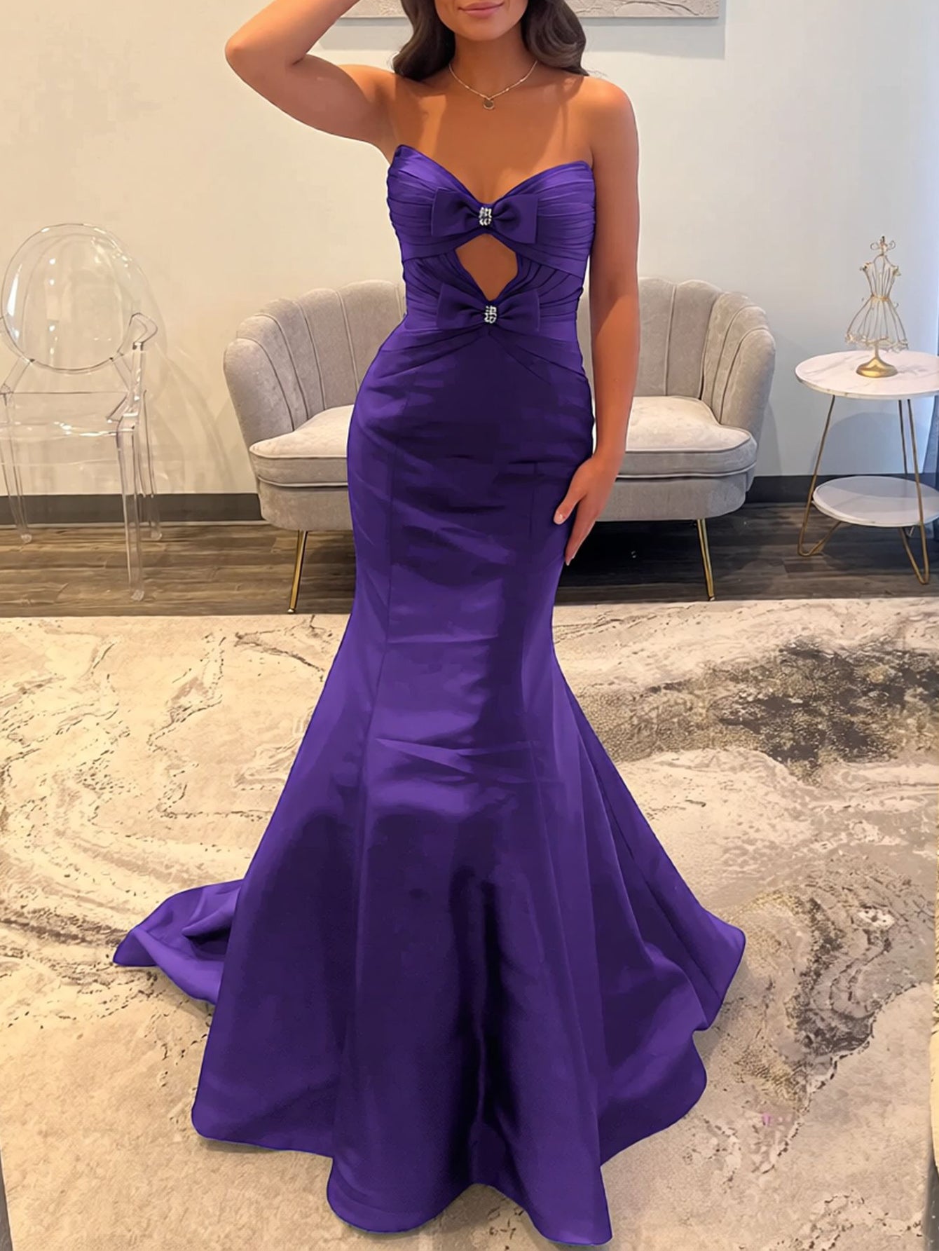 Strapless Cut Front Bows Mermaid Prom Dress - Purple