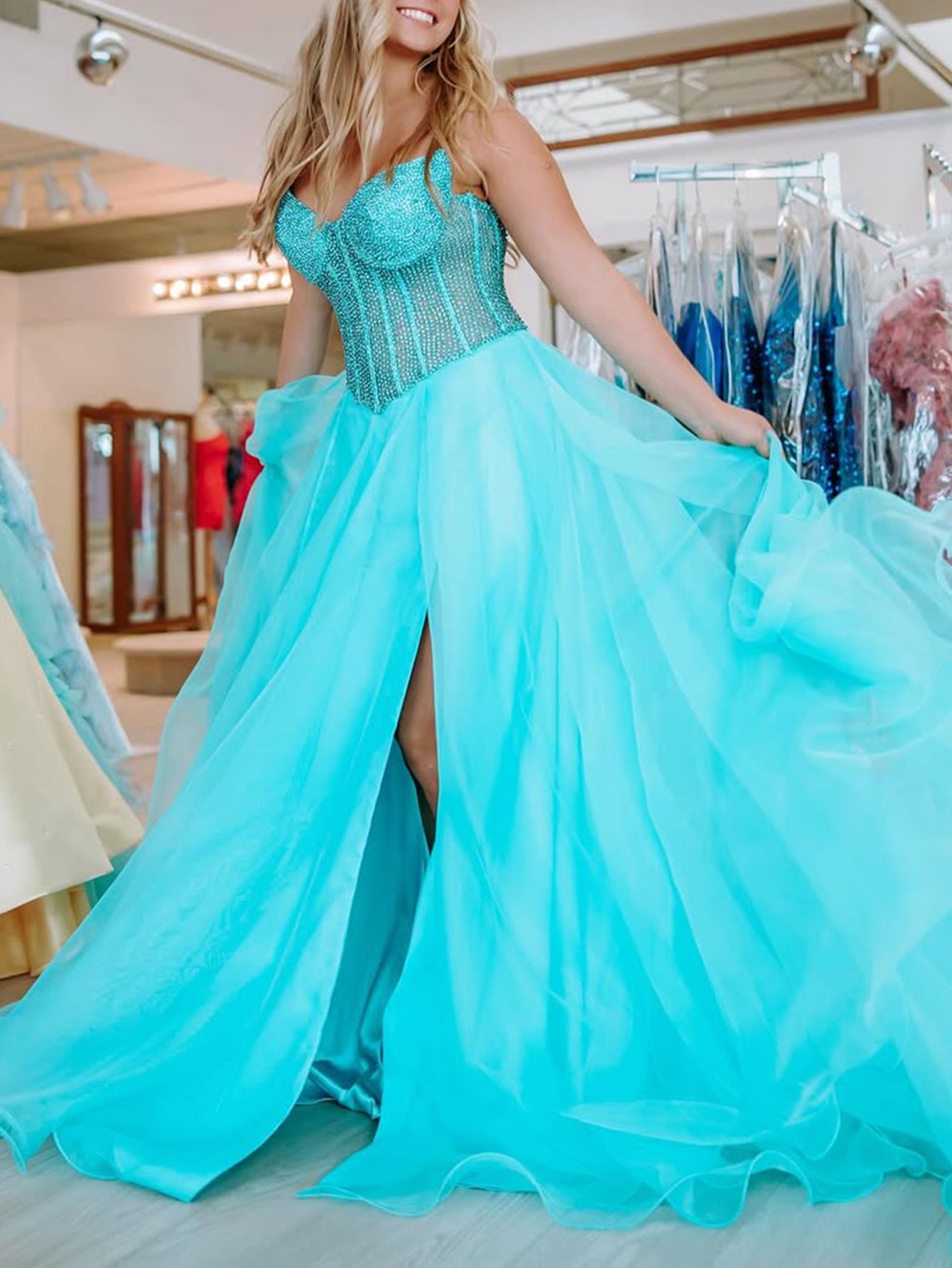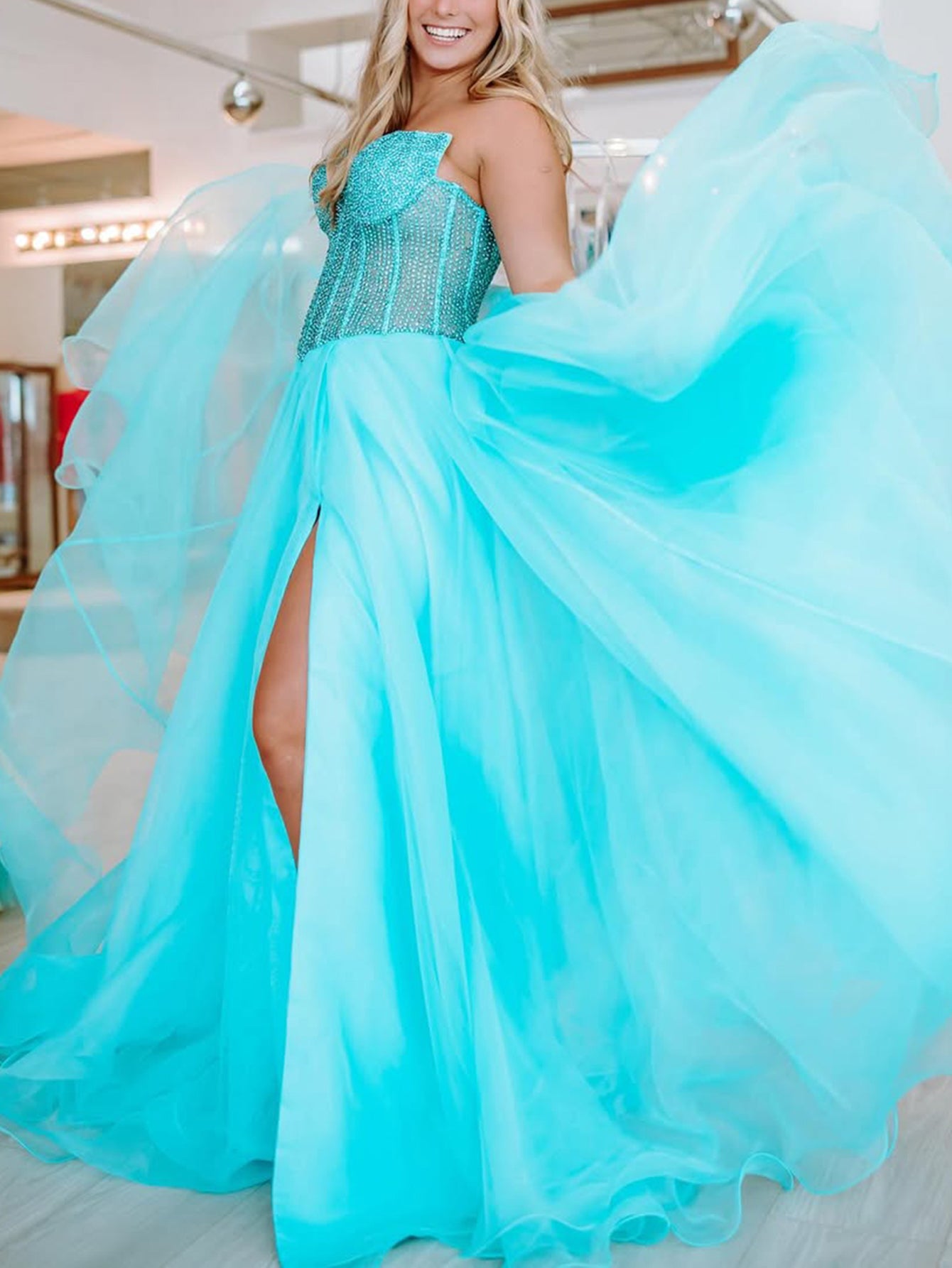 Details: Sparkly, Beading, Split, Illusion, Sheer, Bodice
