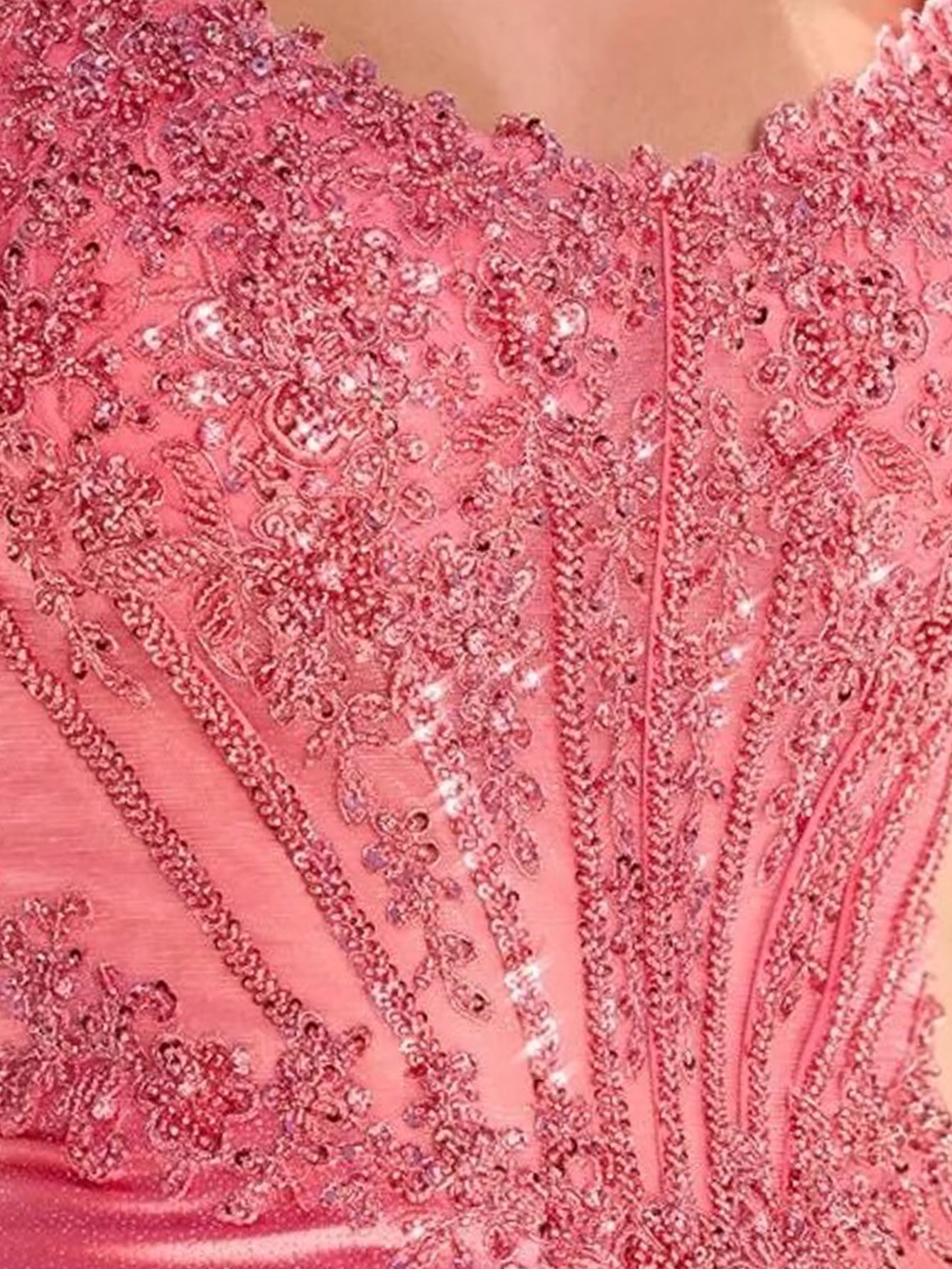 Strapless Hand Beading Lace Up Ruched Illusion Bodice Mermaid Prom Dress With Slit - Orange Red