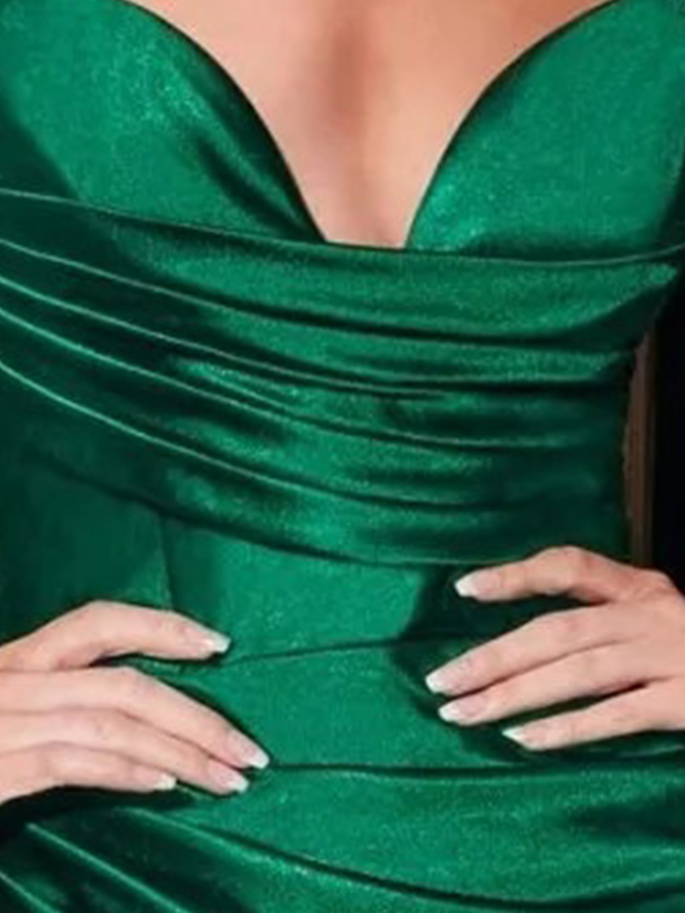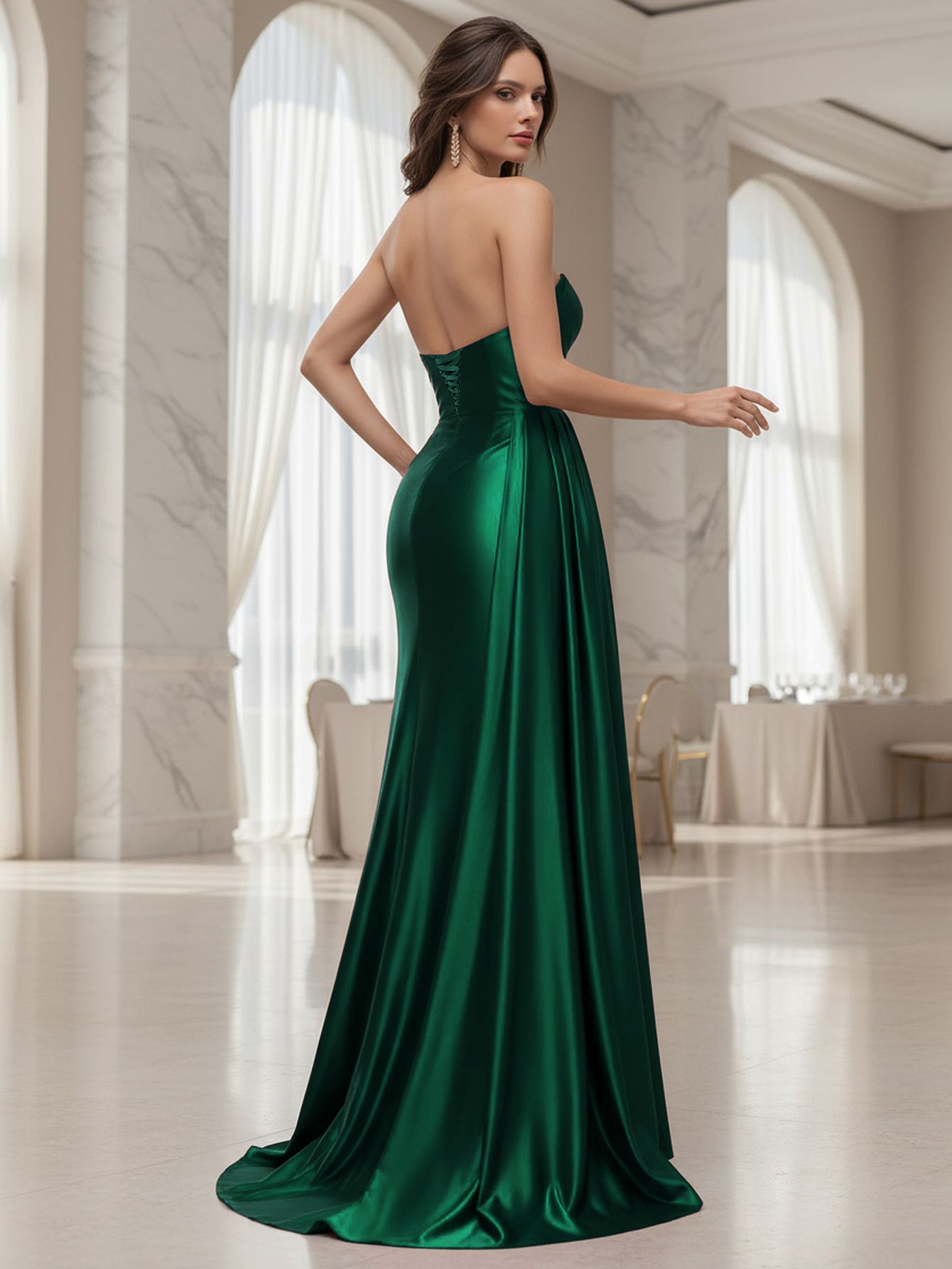 Strapless Lace Up Ruched Bodice Mermaid Prom Dress With Drop - Green
